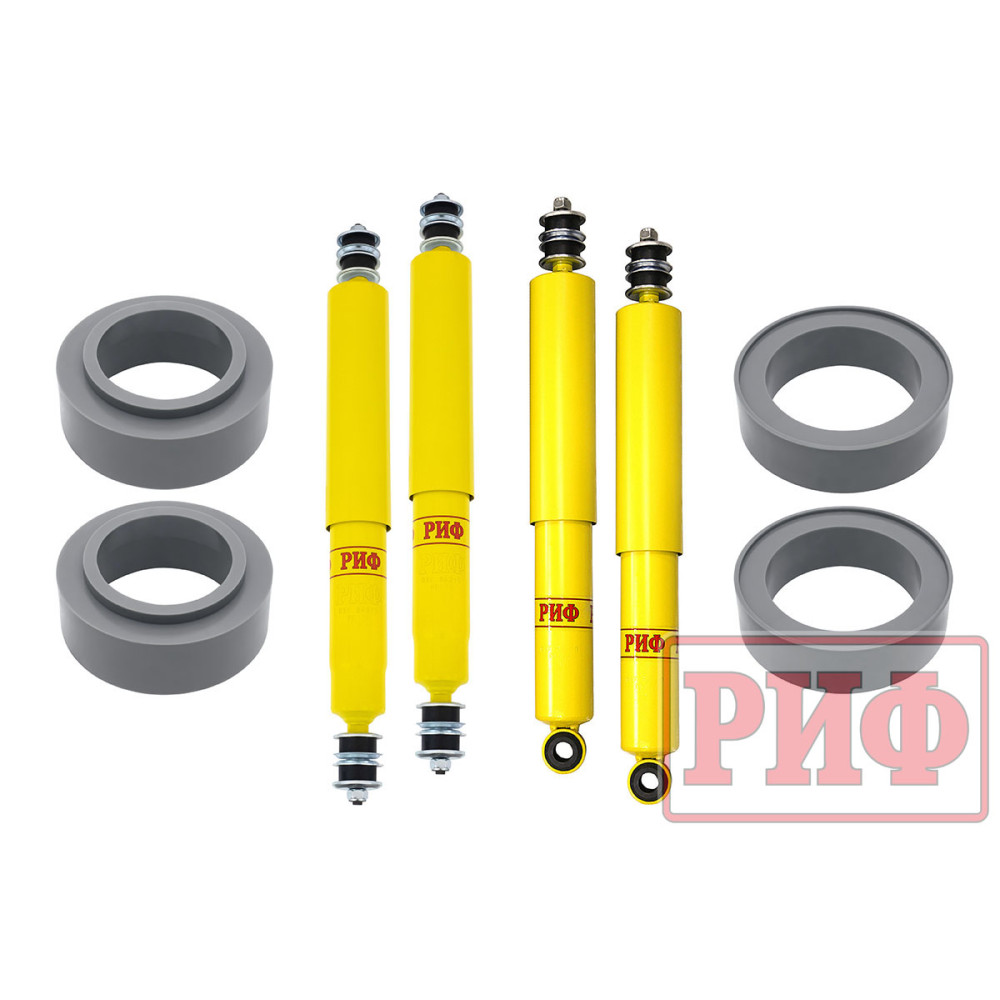 Все компоненты лифт-комплектов РИФ разработаны специально для эксплуатации внедорожника в тяжелых условиях на различных дорожных покрытиях.