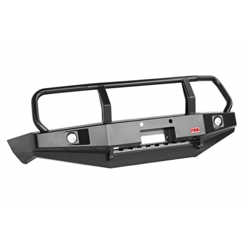 Бампер оснащен мощными упорами под реечный домкрат и буксирными проушинами для работы с рывковой или буксировочной стропой. Тщательно продуманная конструкция внутренних усилителей обеспечивают максимальную надежность бампера, стойкость к высоким нагрузкам и сильным ударам.