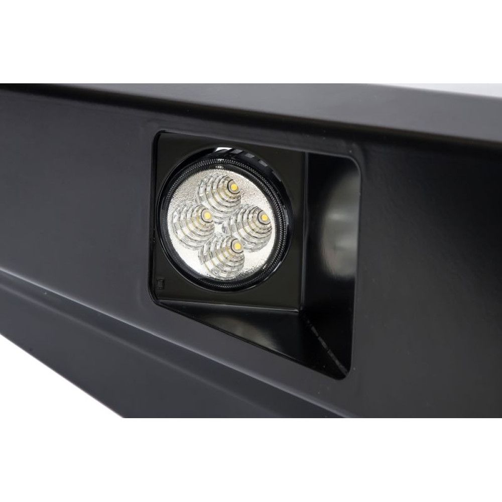 Бампер штатно комплектуется мощными и экономичными светодиодными фарами водительского света РИФ, модель SM-810F! Они формируют плотный пучок дополнительного света, который рассеивается перед автомобилем. Эти фары хорошо освещают дорогу и обочины, обеспечивая более широкую видимость по сторонам. Являют собой неплохое дополнение ближнего света.