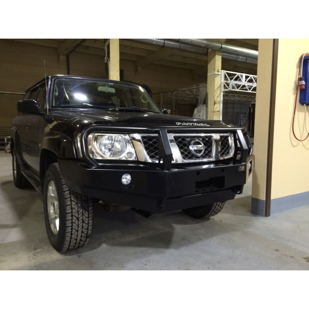 Бампер РИФ силовой передний Nissan Patrol Y61 2004+ с доп. фарами и защитной дугой