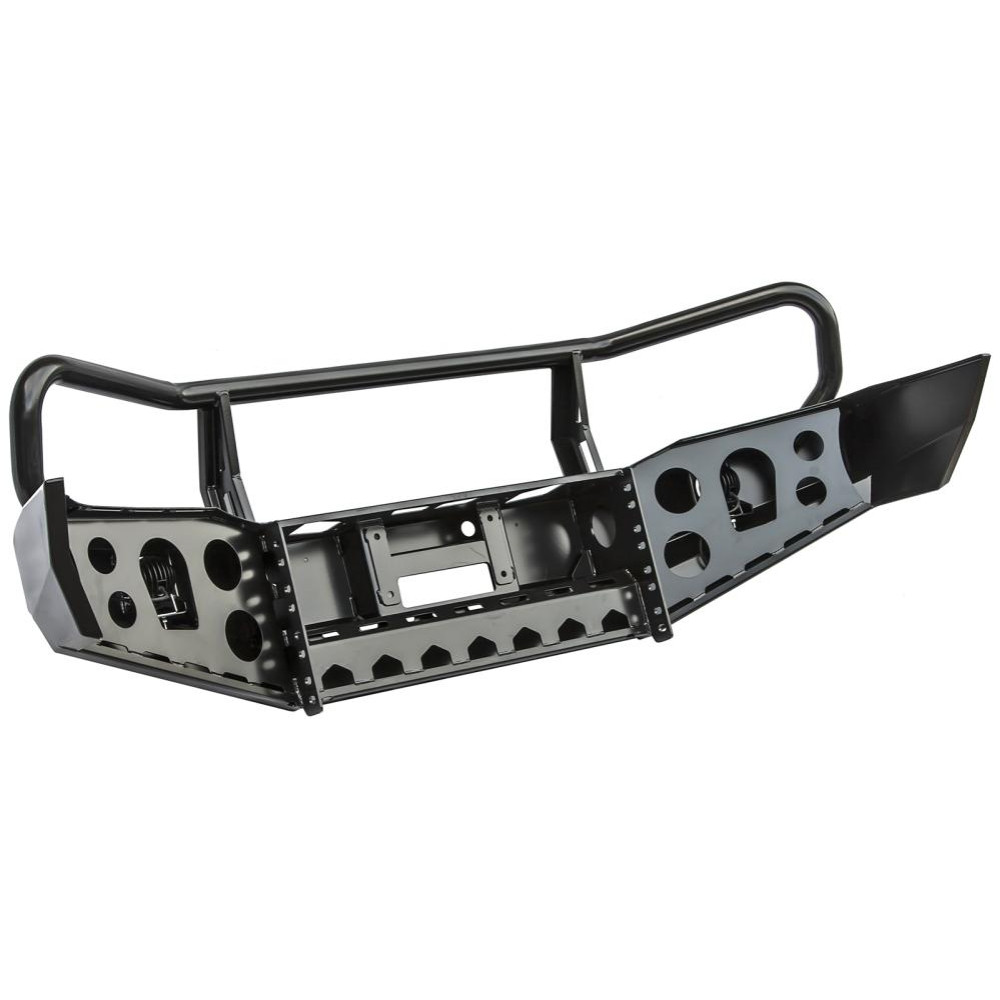 Бампер оснащен мощными упорами под реечный домкрат и буксирными проушинами для работы с рывковой или буксировочной стропой. Тщательно продуманная конструкция внутренних усилителей обеспечивают максимальную надежность бампера, стойкость к высоким нагрузкам и сильным ударам.