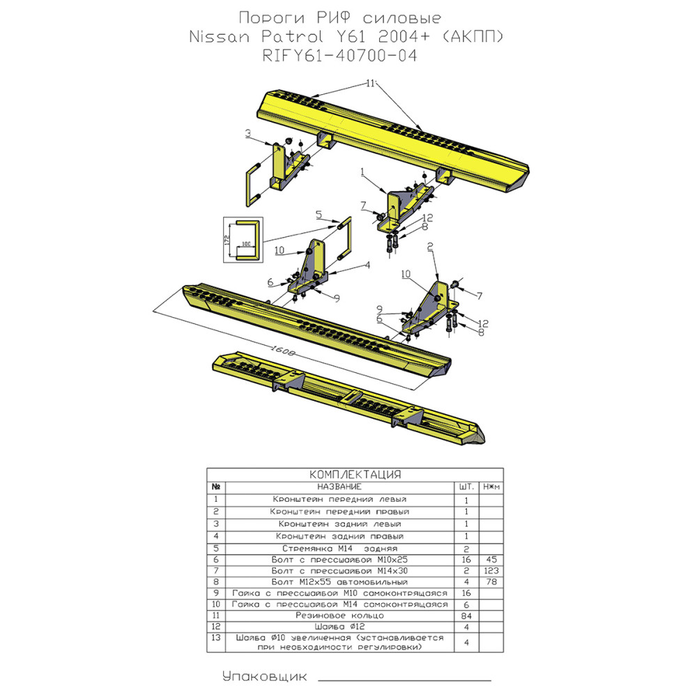 Пороги РИФ силовые Nissan Patrol Y61 2004+ (АКПП)