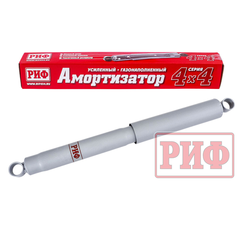 Газ, находящийся под давлением в компенсационной камере наружной трубы, позволяет повысить устойчивость амортизатора к высоким нагрузкам. Масло под давлением газа менее подвержено эффекту кавитации, а значит и меньше вспенивается, в отличие от обычного гидравлического амортизатора. Также, благодаря увеличенному масляному резервуару с большим количеством масла, усиленному штоку и поршню, амортизаторы "РИФ" обладают длительным рабочим ресурсом и обеспечивают великолепную стабильность рабочих характеристик при длительной езде по дорогам общего пользования, отличную курсовую устойчивость, хорошую артикуляцию подвески и приятную плавность хода на бездорожье.