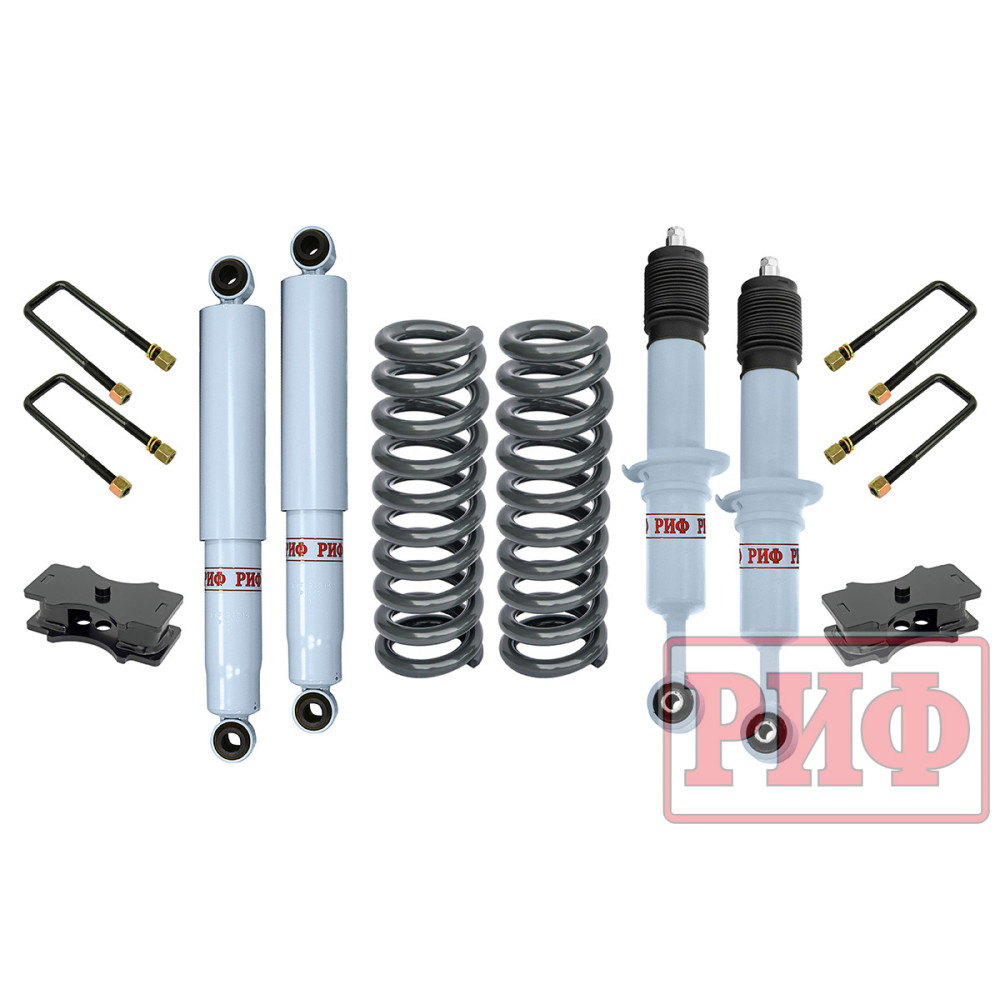 Основное отличие от "жесткого" варианта лифт-комплекта - рессоры и пружины меньшей грузоподъемности. Такой лифт-комплект рекомендуется устанавливать на стандартные автомобили, не утяжеленные силовым обвесом, лебедками и прочим доп оборудованием.