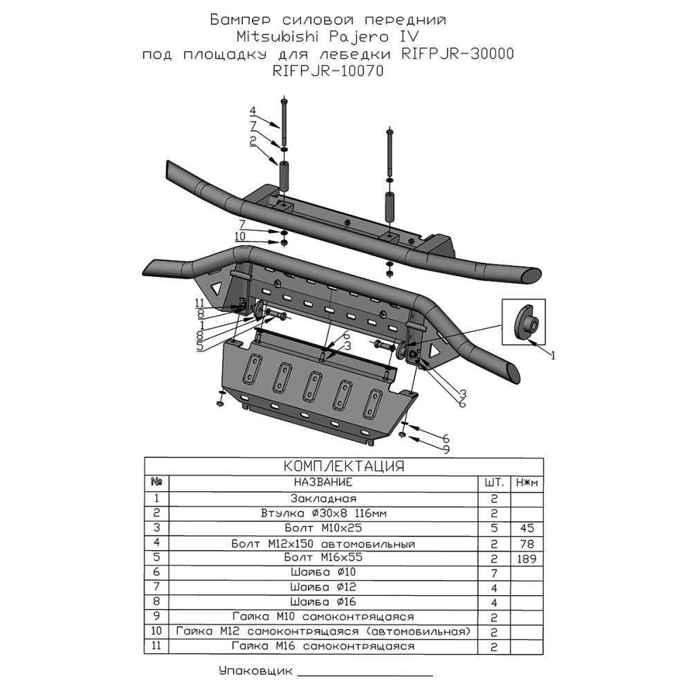 Внимание! Бампер устанавливаается только совместно с площадкой под лебедку RIFPJR-30000