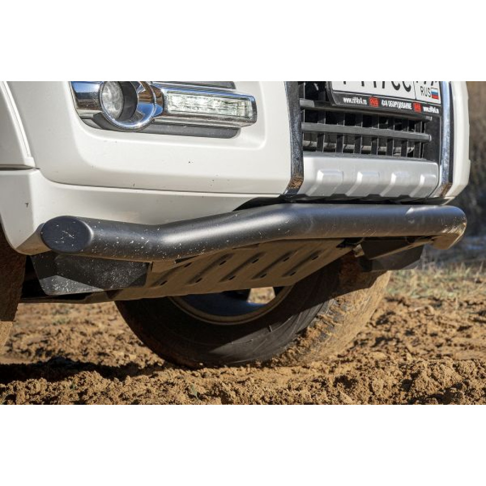 Новый передний бампер РИФ для Mitsubishi Pajero IV – это не просто защита штатного бампера, а уникальная силовая конструкция, являющаяся одновременно и полноценным силовым бампером с интегрированной защитой радиатора! Защита радиатора тяг выполняет важную роль в усилении конструкции, поэтому она и является частью бампера.