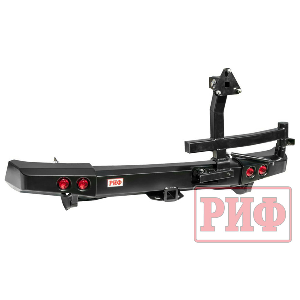 Задний силовой бампер РИФ надежно защитит кузов автомобиля на бездорожье или в городе в случае непредвиденных инцидентов. Бампер оборудован упорами под хай джек и буксирными проушинами для работы с рывковой или буксировочной стропой.