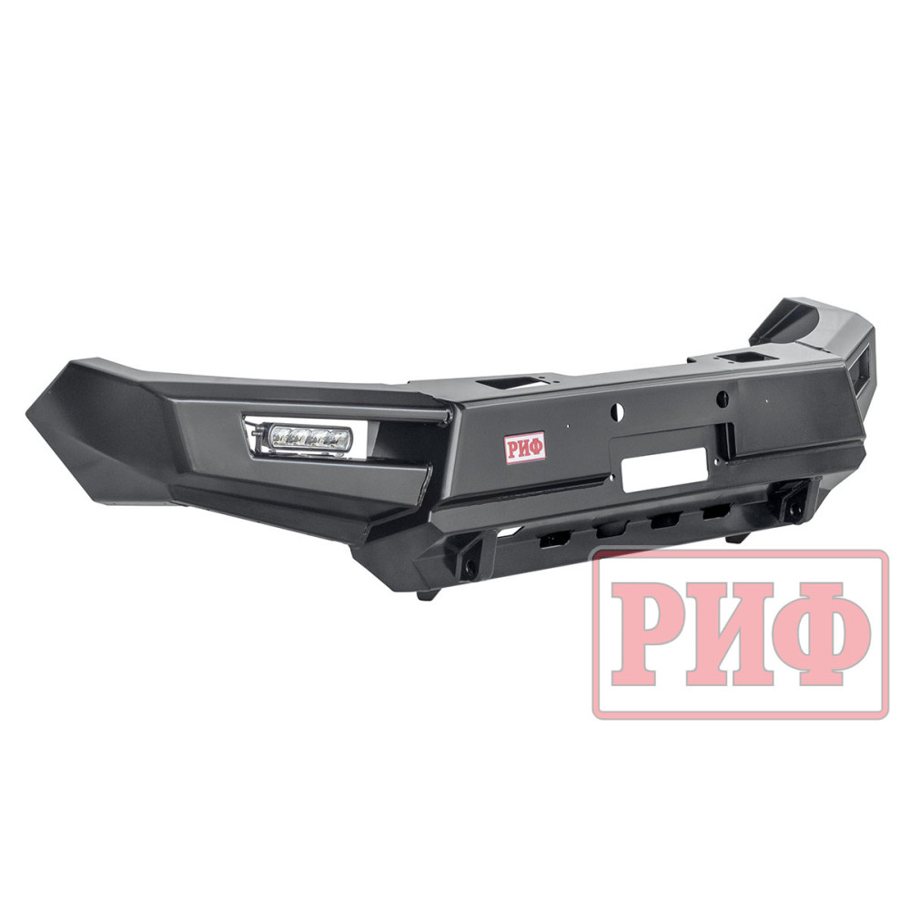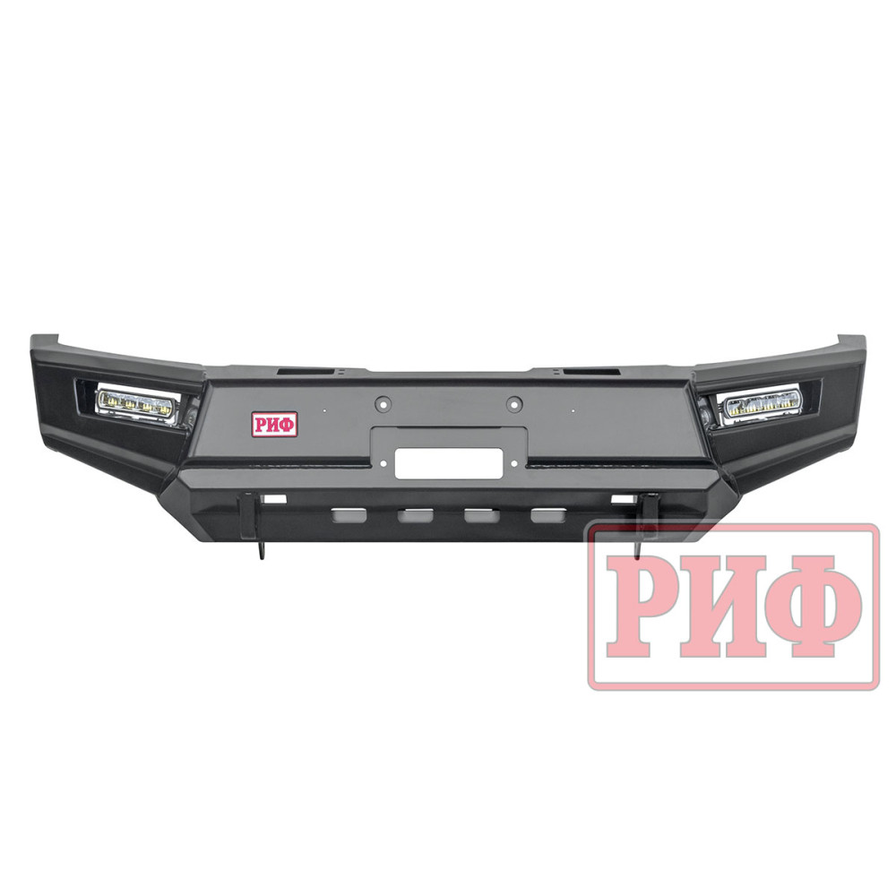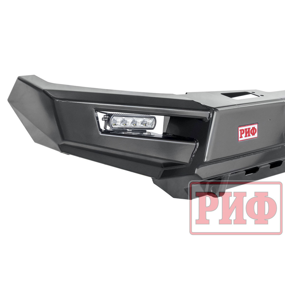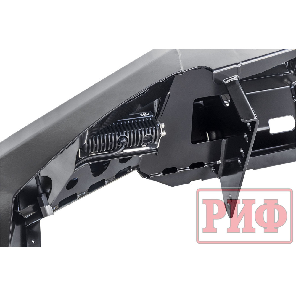 Бампер штатно комплектуется мощными и экономичными светодиодными фарами водительского света РИФ. Они формируют плотный пучок дополнительного света, который рассеивается перед автомобилем. Эти фары хорошо освещают дорогу и обочины, обеспечивая более широкую видимость по сторонам. Являют собой неплохое дополнение ближнего света.