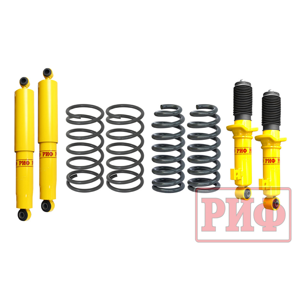 Все компоненты лифт-комплектов РИФ разработаны специально для эксплуатации внедорожника в тяжелых условиях на различных дорожных покрытиях. Амортизаторы с технологией R-Air и пружины РИФ не только компенсируют вес установленного на внедорожнике дополнительного оборудования (бамперов, порогов, дополнительных топливных баков, лебедок и прочего), но также существенно повышают грузоподъемность автомобиля.