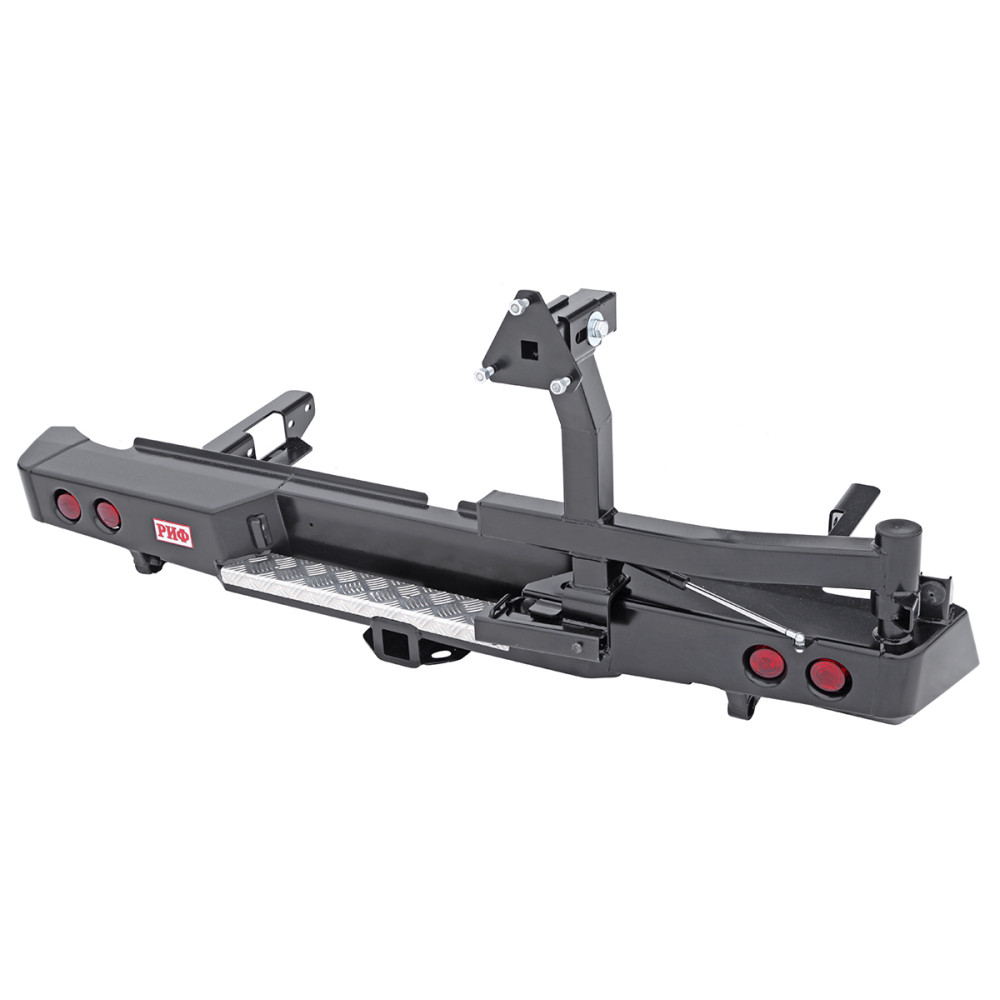Задний силовой бампер РИФ надежно защитит кузов автомобиля на бездорожье или в городе в случае непредвиденных инцидентов. Бампер оборудован упорами под хай джек и буксирными проушинами для работы с рывковой или буксировочной стропой.