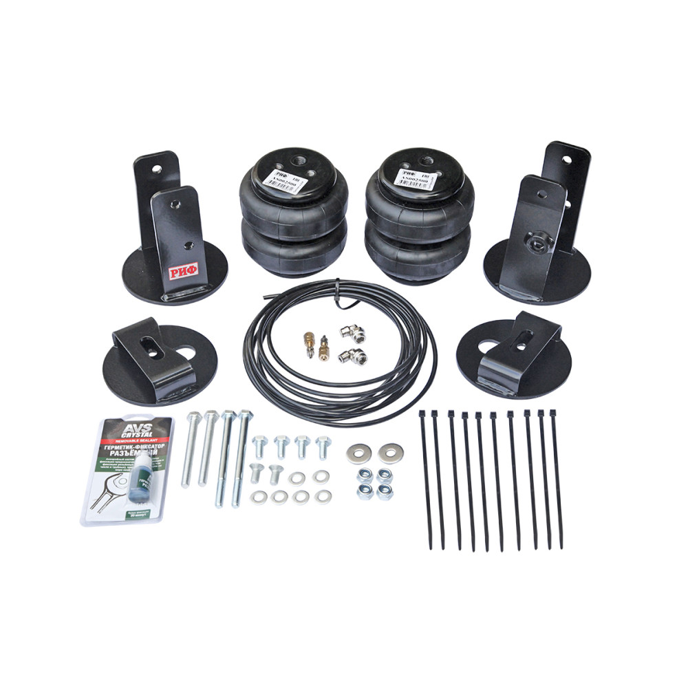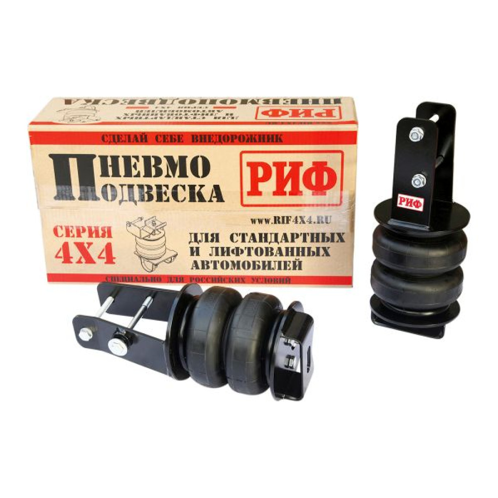 Комплект пневмоподвески РИФ устанавливается в дополнение к штатной подвеске автомобиля и позволяет снизить нагрузку на рессоры и использовать полную грузоподъёмность автомобиля без изменения геометрической проходимости.