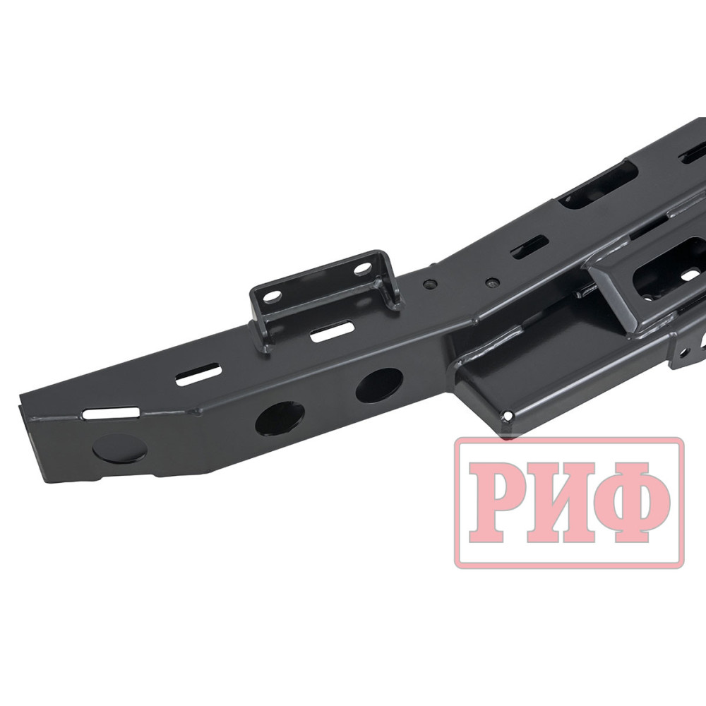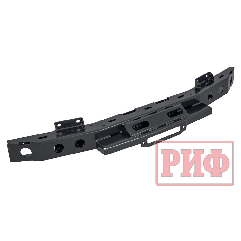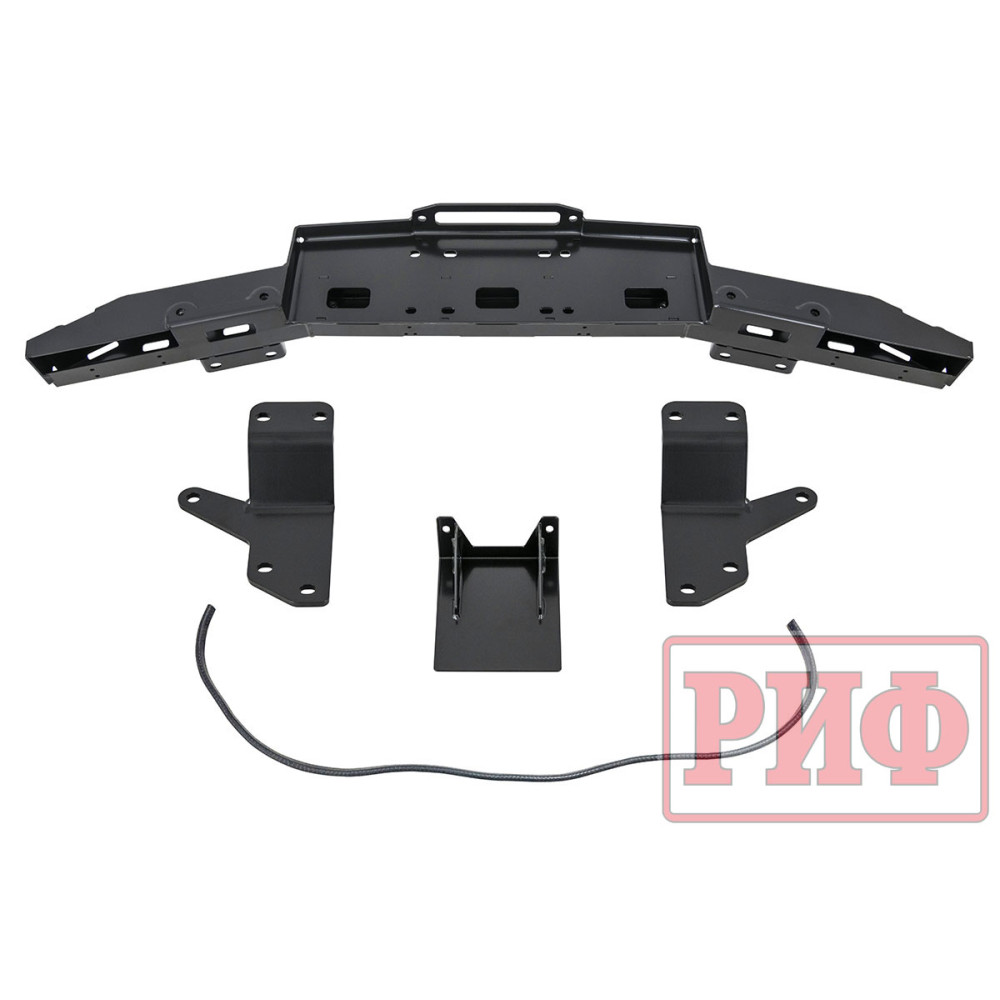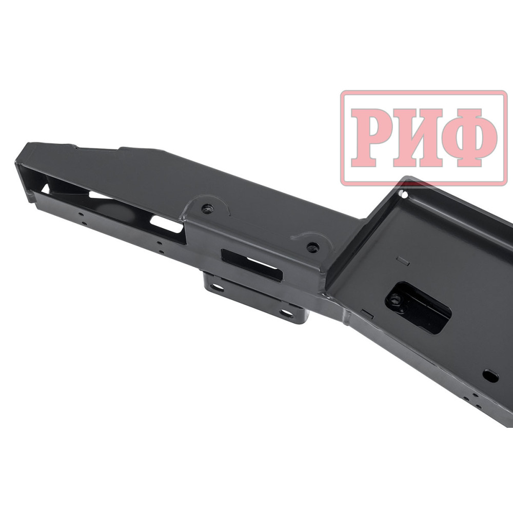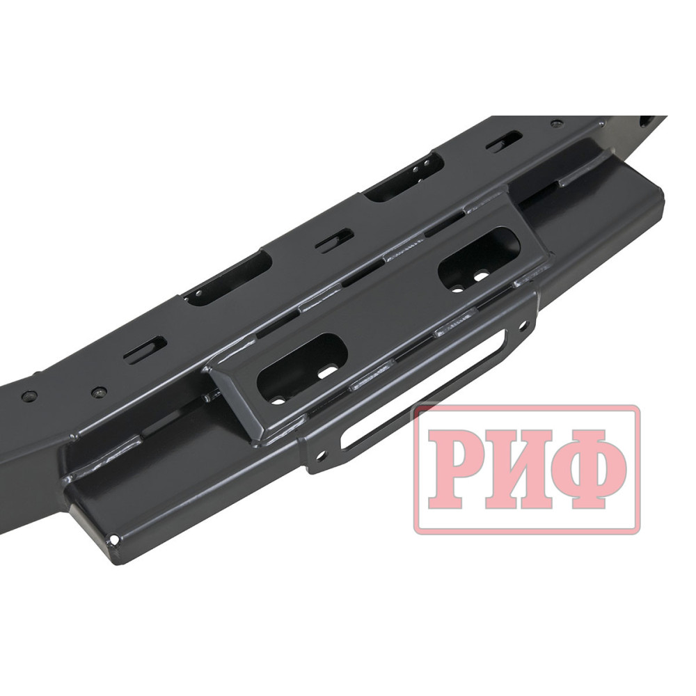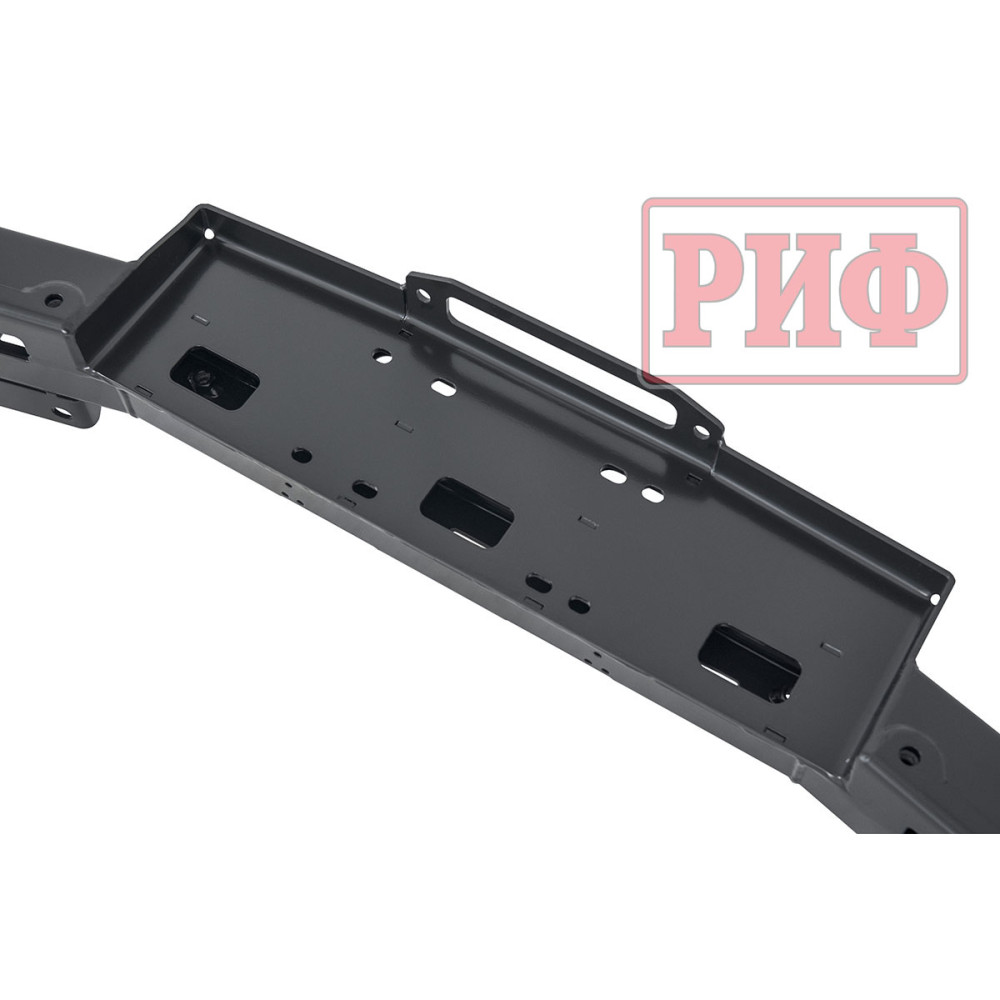 Площадка РИФ под лебедку в штатный бампер Toyota Land Cruiser 300 отличается большим запасом прочности и рассчитана на установку лебедки с тяговым усилием до 9500 lbs (4300 кг). Площадка имеет в своей конструкции интегрированный защитный брус, заменяющий штатный, который приходится демонтировать при установке площадки и, таким образом, обеспечивает дополнительную защиту спереди. Площадка устанавливается на раму автомобиля и не требует никаких вмешательств в конструкцию, кроме вырезания в штатном бампере аккуратного отверстия под клюз.