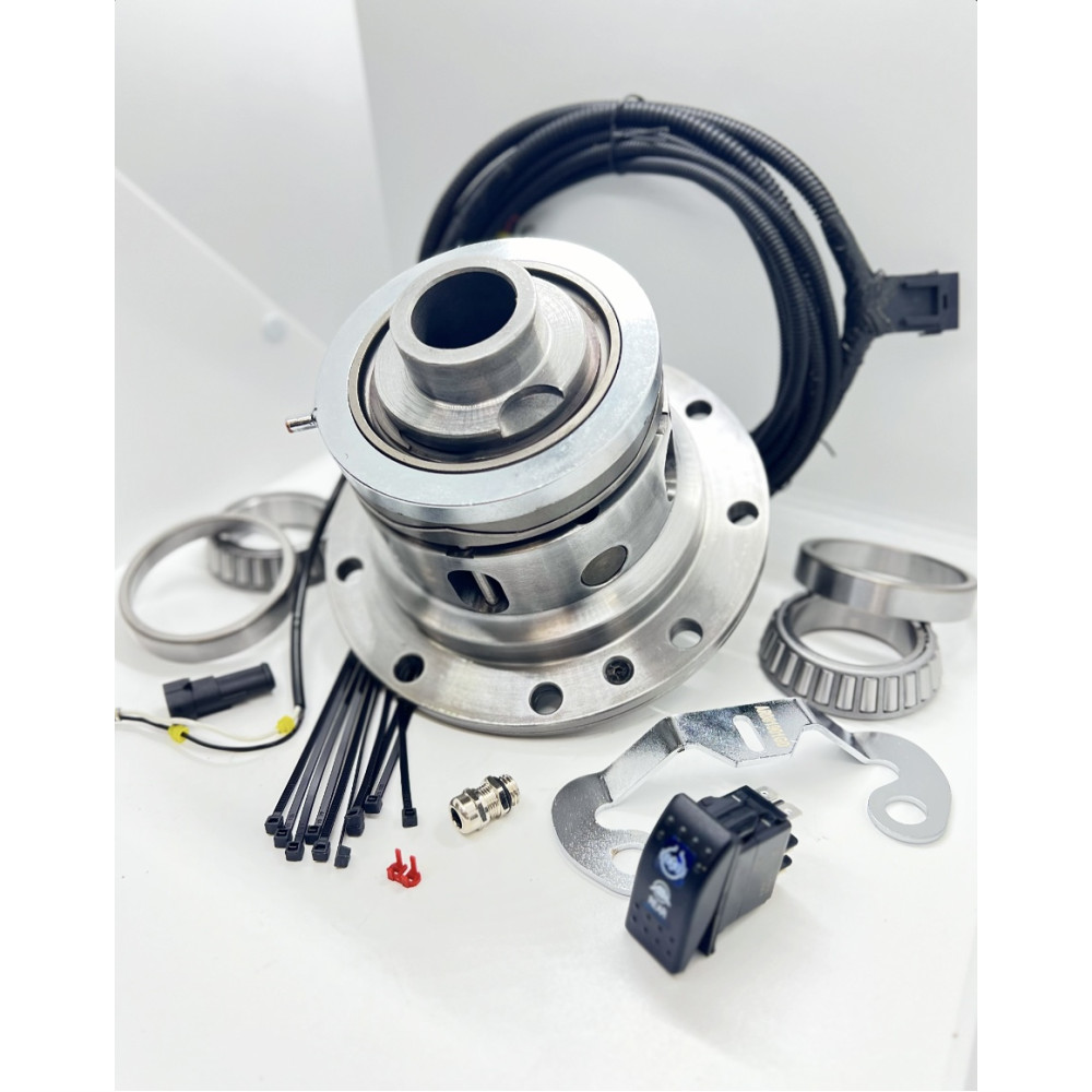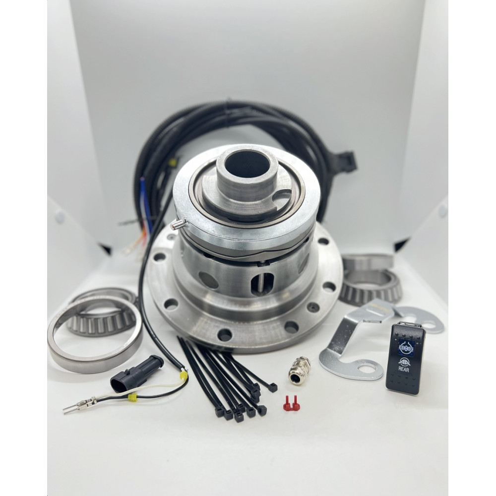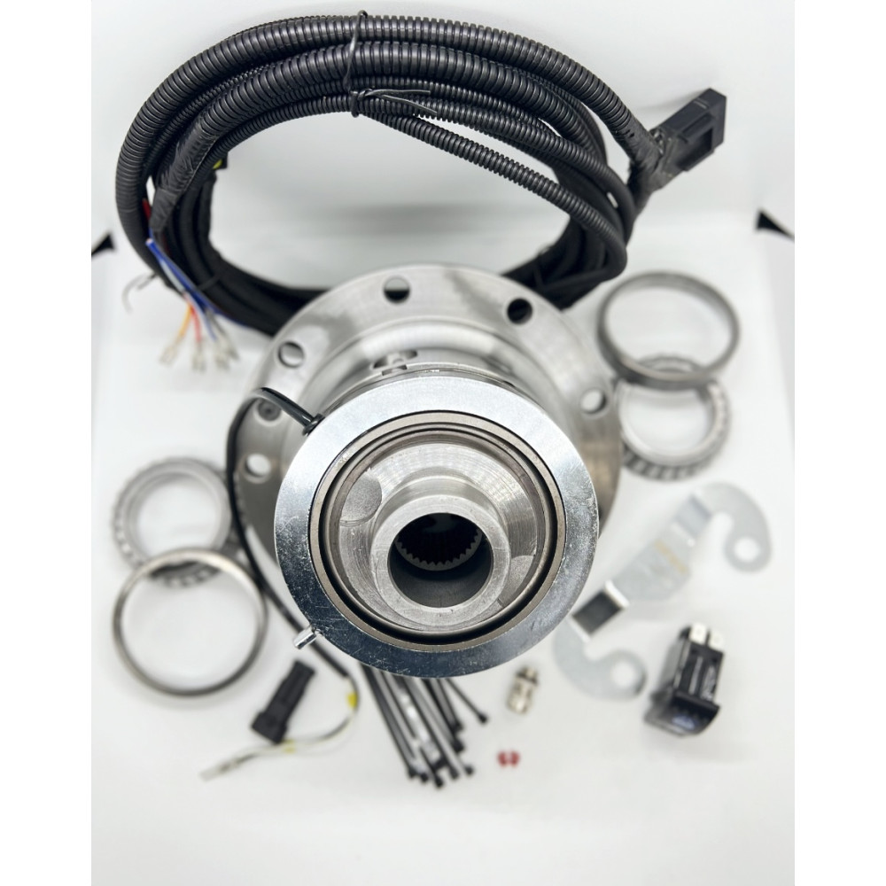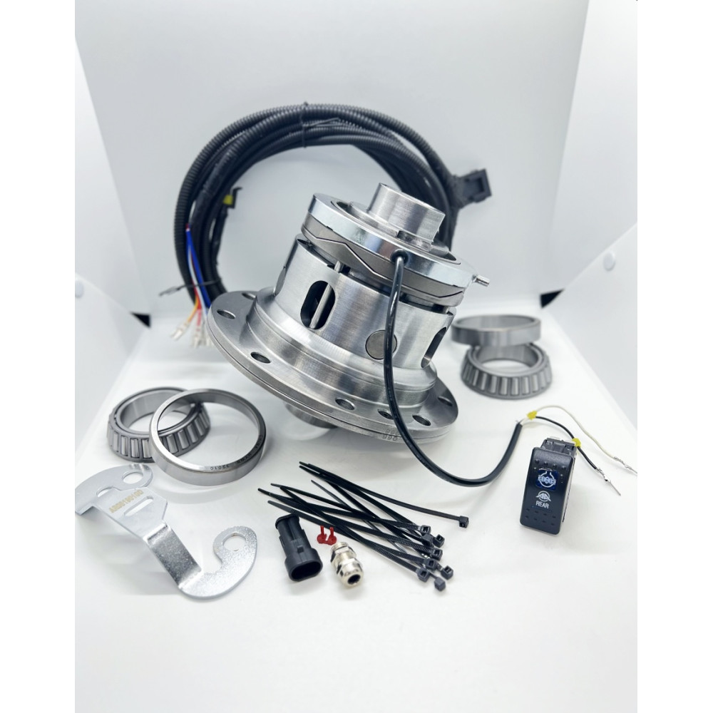 Сделана по принципу Eaton E-locker, т.е. включение происходит за счет электромагнитной муфты, установленной на корпус блокировки, т.е. из моста выходит только пару проводков, на который надо подать 12 В. Вся проводка, кнопка, реле и предохранитель идут в комплекте с блокировкой. В отличие от пневмоблокировок - не требуется компрессора и пневмотрубок к мосту, в отличие от штатных электроблокировок не требуется моторчика и контроллера управления включением.