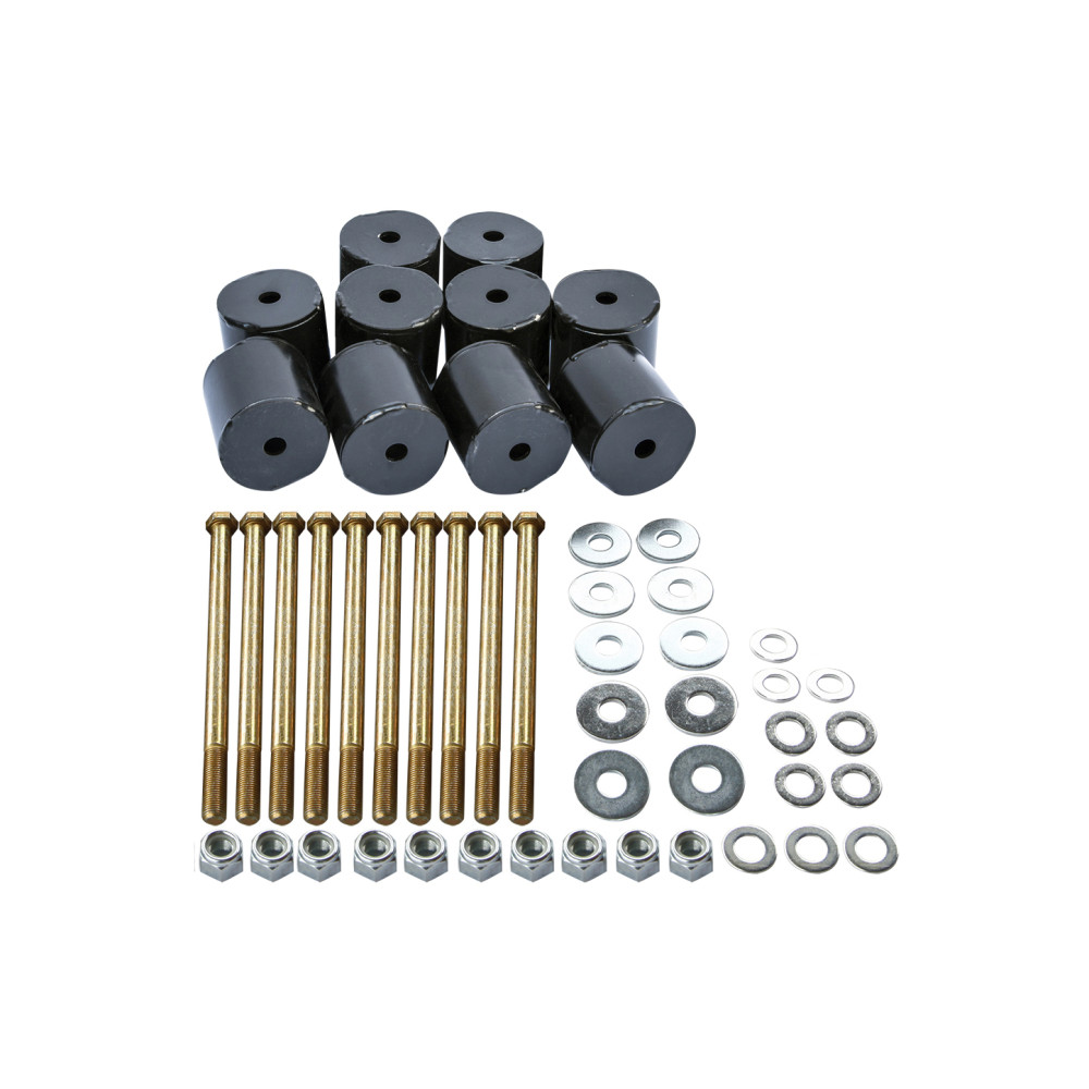 Комплект стальных проставок для боди-лифта позволяет поднять кузов над рамой на 65 мм, благодаря чему появится возможность установить колеса большего диаметра, существенно улучшив геометрическую проходимость внедорожника. Да и внешний вид автомобиля станет более эффектным и брутальным.