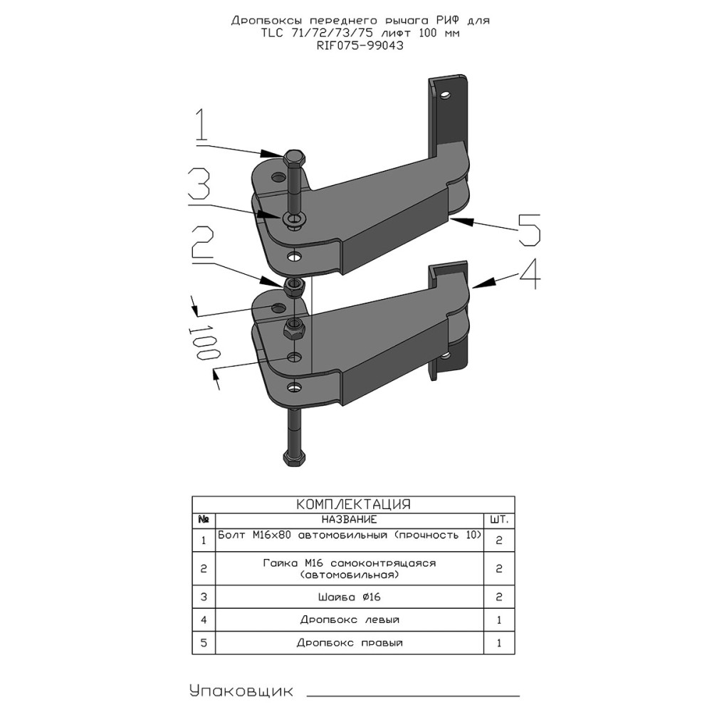 • Дропбоксы переднего рычага РИФ для TLC 71/72/73/75 МКПП (до 1996 г), лифт 100 мм 2 шт.