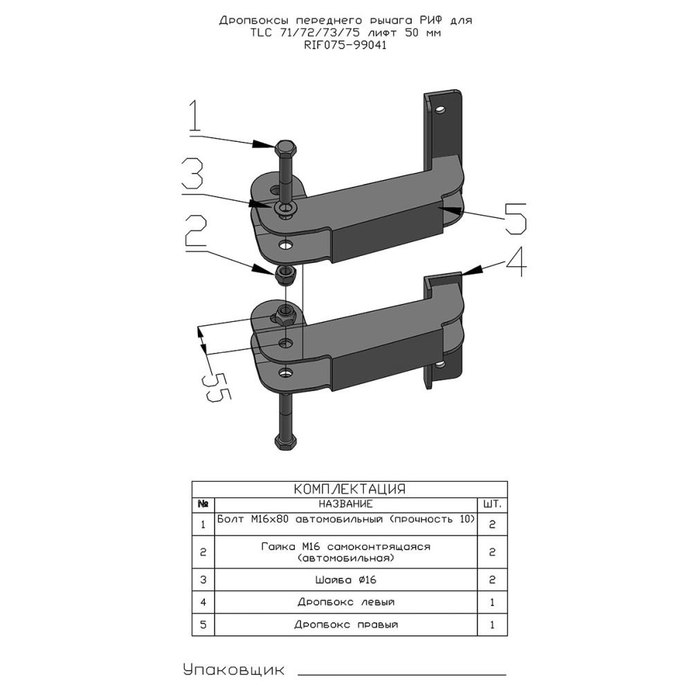 Дропбоксы переднего рычага РИФ для TLC 71/72/73/75 МКПП (до 1996 г) лифт 50 мм 2 шт.