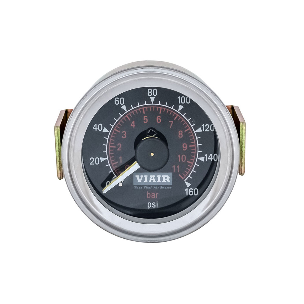 Удобный бортовой манометр с подсветкой для определения давления в пневмосистеме. Благодаря наличию двух стрелок позволяет измерять давление сразу в двух воздушных магистралях. Показывает давление от 0 до 11 атм. Имеет две шкалы измерений - bar и psi.