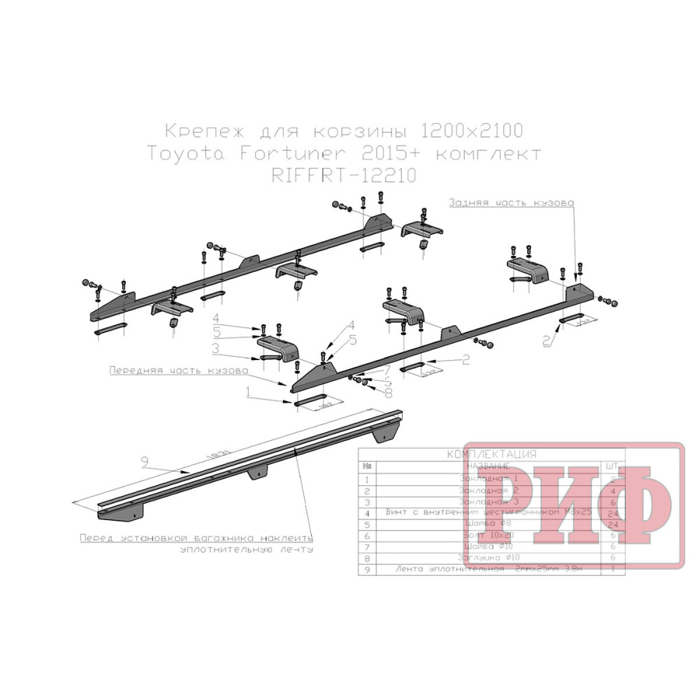 • Багажник экспедиционный РИФ 1200х2100 мм для Toyota Fortuner 2015+