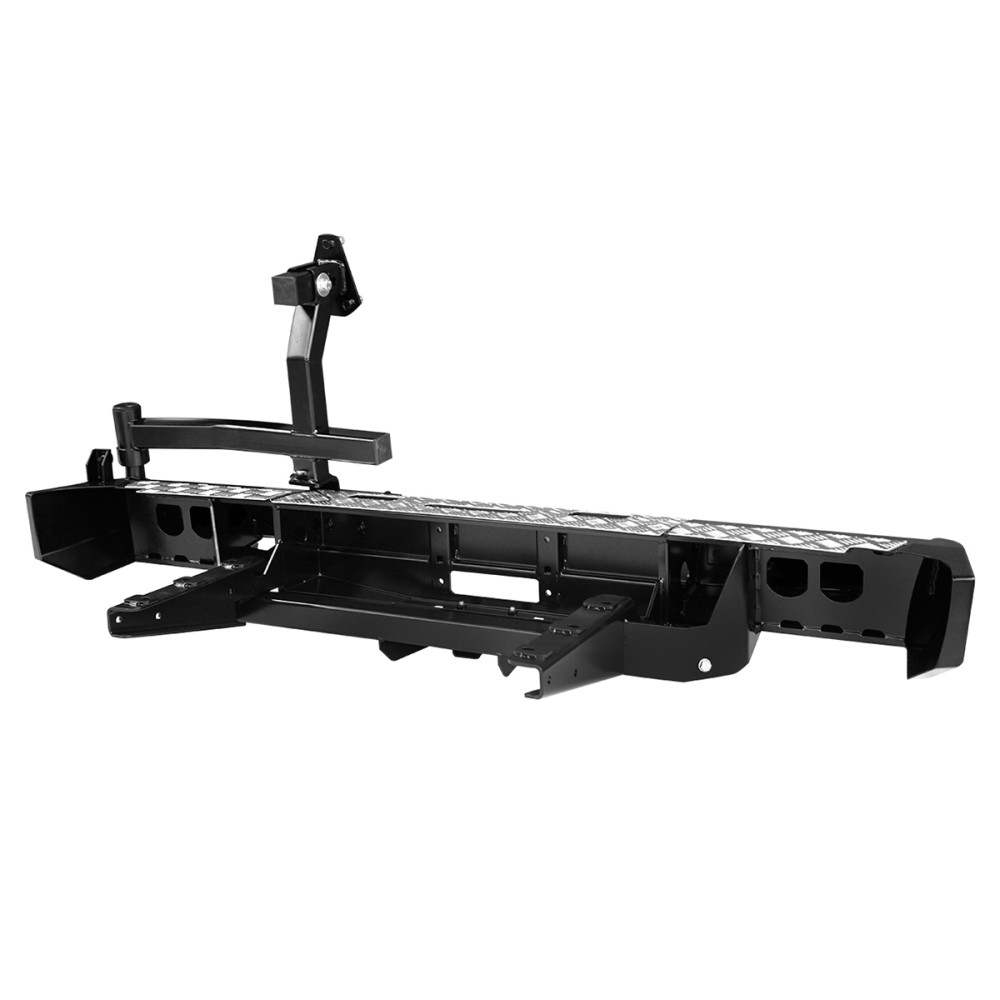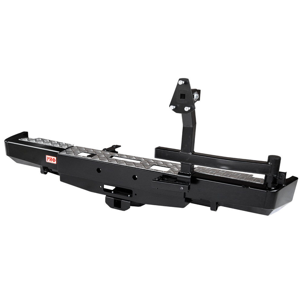 Задний силовой бампер РИФ надежно защитит кузов автомобиля на бездорожье или в городе в случае непредвиденных инцидентов. Бампер оборудован упорами под хай джек и буксирными проушинами для работы с рывковой или буксировочной стропой.