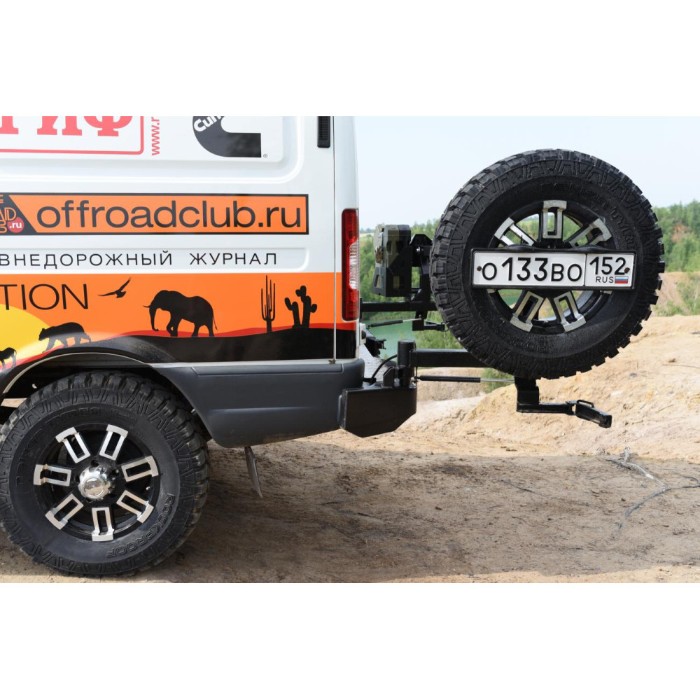 Надежная калитка выдержит самое большое запасное колесо. Надежный фиксатор калитки удержит ее в закрытом состоянии на любой пересеченной местности, особо жесткая конструкция калитки рассчитана на тяжелую запаску большого размера.