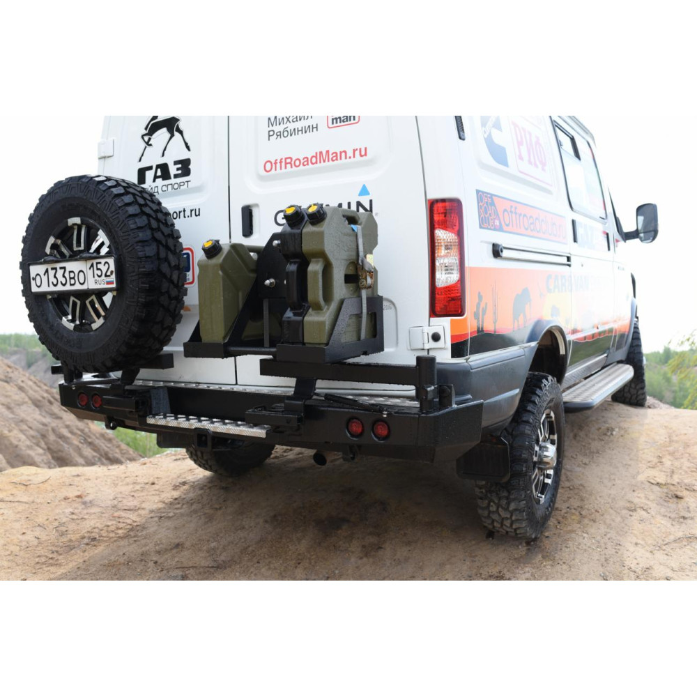 Бампер РИФ силовой задний ГАЗ Соболь с квадратом под фаркоп, 2-мя калитками, фонарями, подсветкой номера стандарт 0 0р.