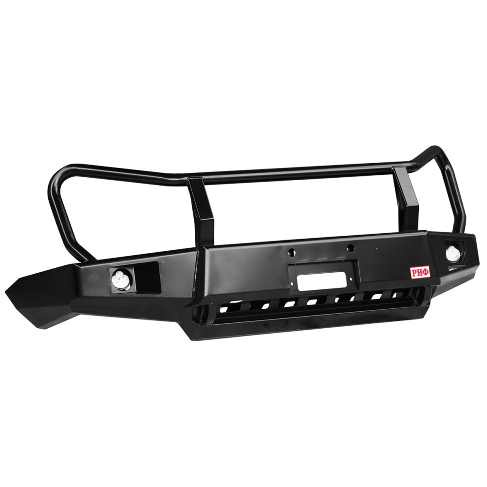 Передний силовой бампер с защитной дугой РИФ служит для защиты автомобиля на бездорожье и в городе. В случае контакта или легкого столкновения с препятствием в виде камней, бревен, пней, колей или незадачливых водителей, риск получить серьезные повреждения машины существенно уменьшается, а это очень важно в экспедициях и в повседневной жизни. Бампер с кенгурятником не только защитит, но и украсит внедорожник благодаря эффектному и элегантному дизайну.