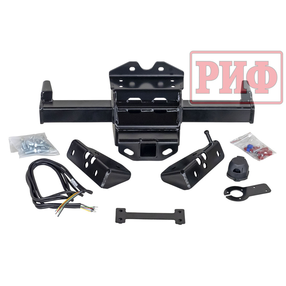 Конструкция фаркопа РИФ рассчитана на очень серьезные нагрузки, она обладает огромным запасом прочности благодаря силовым элементам, толстому металлу и качественной сварке. Это, пожалуй, самый мощный из существующих на рынке фаркопов подобного типа. Фаркоп, помимо своих прямых обязанностей, а именно буксировки прицепа, легко выдержит как подъем хайджеком, так и использование мощной съемной лебедки с тяговым усилием 4500 кг или буксирной проушины.