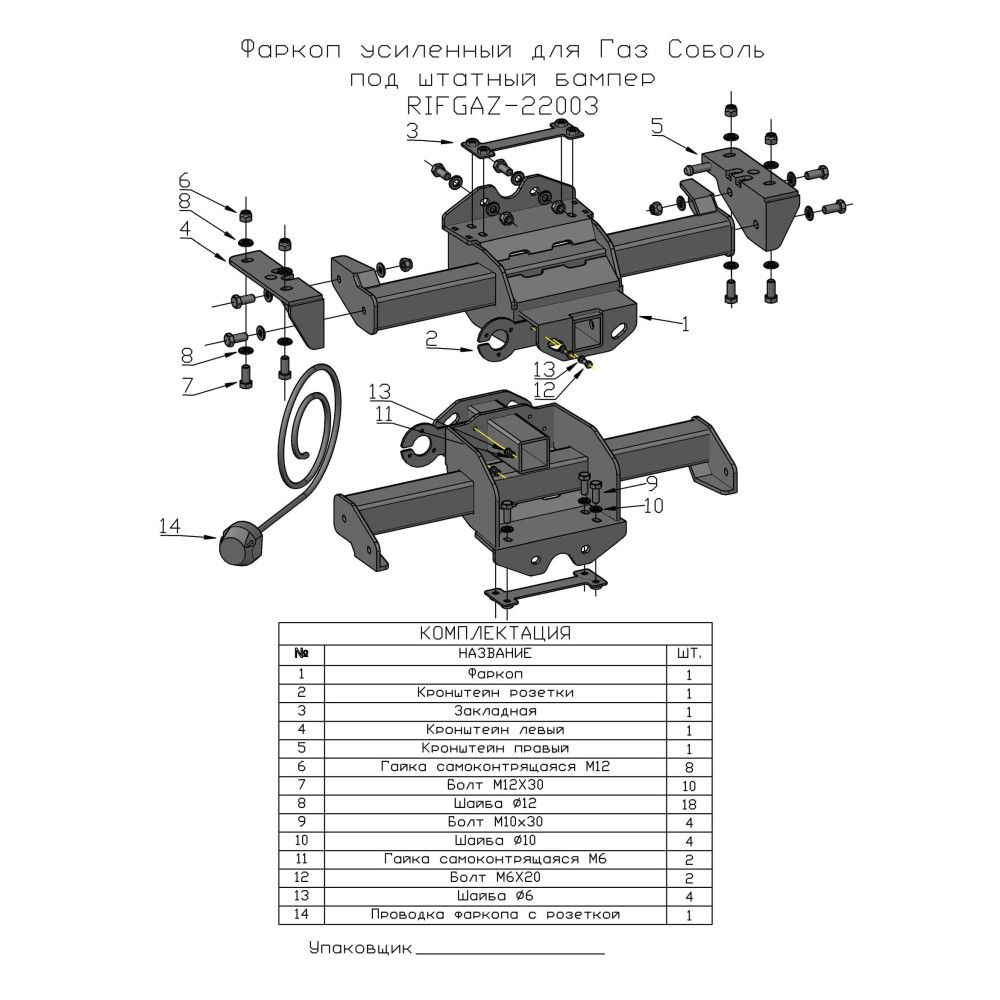 Фаркоп РИФ усиленный для ГАЗ Соболь под штатный бампер (без шара и переходника)