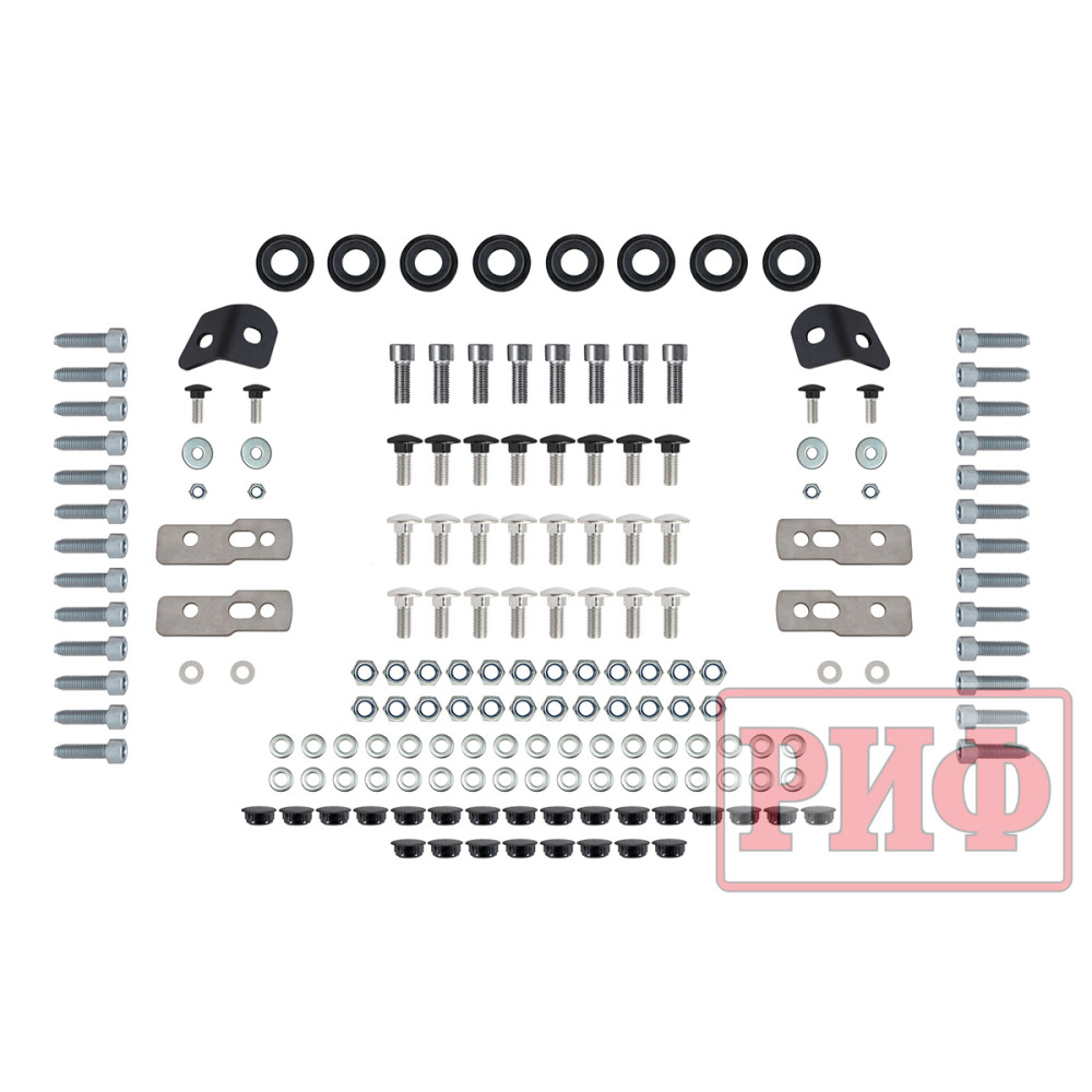 Весь крепеж, который используется в конструкции багажника, в том числе для его сборки и установки, выполнен из высококачественной нержавеющей стали, т.е. со временем не будет никаких ржавых потеков и болты «не закиснут». В случае необходимости, крепеж можно докупить как у нас, так и в любом магазине, продающем крепежные изделия. Багажник поставляется в картонной упаковке с крепежом и подходит только под конкретную модель автомобиля.