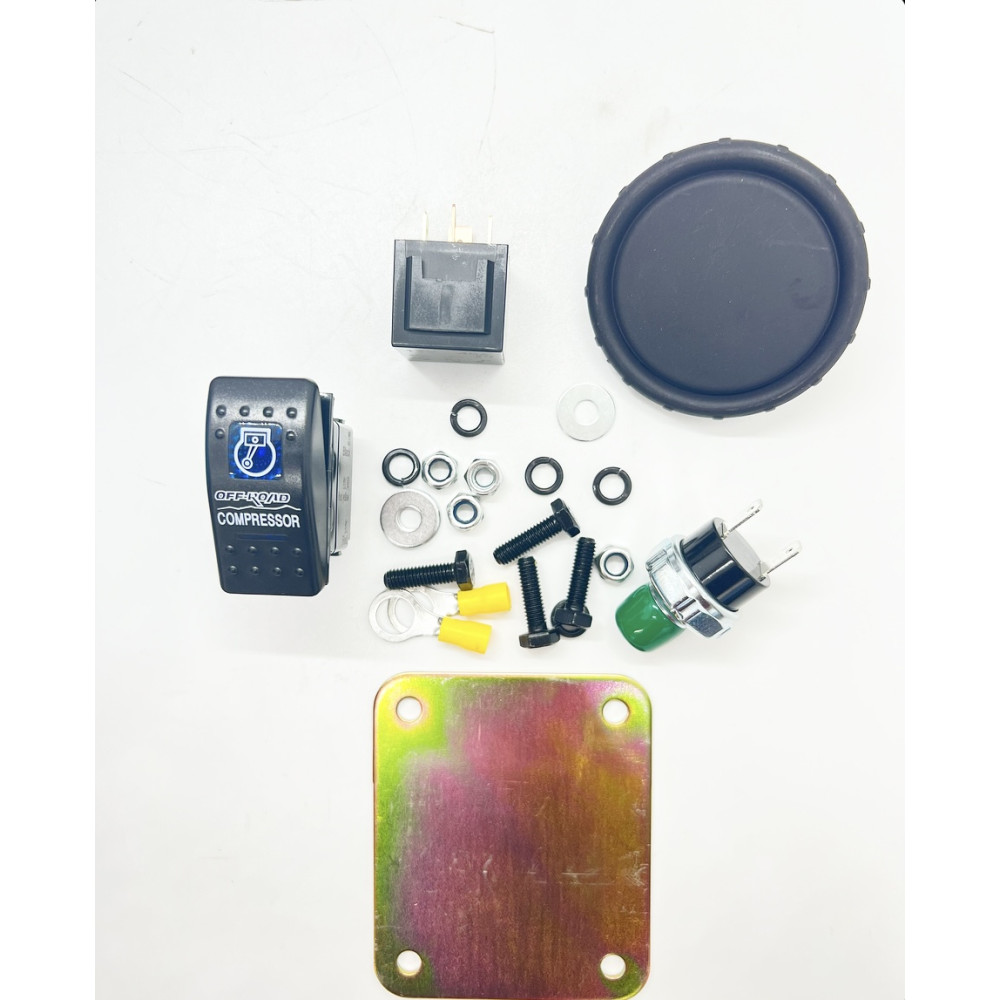 Комплект проводов и кнопка для подключения компрессора к бортовой сети внедорожника и управления работой компрессора из салона
