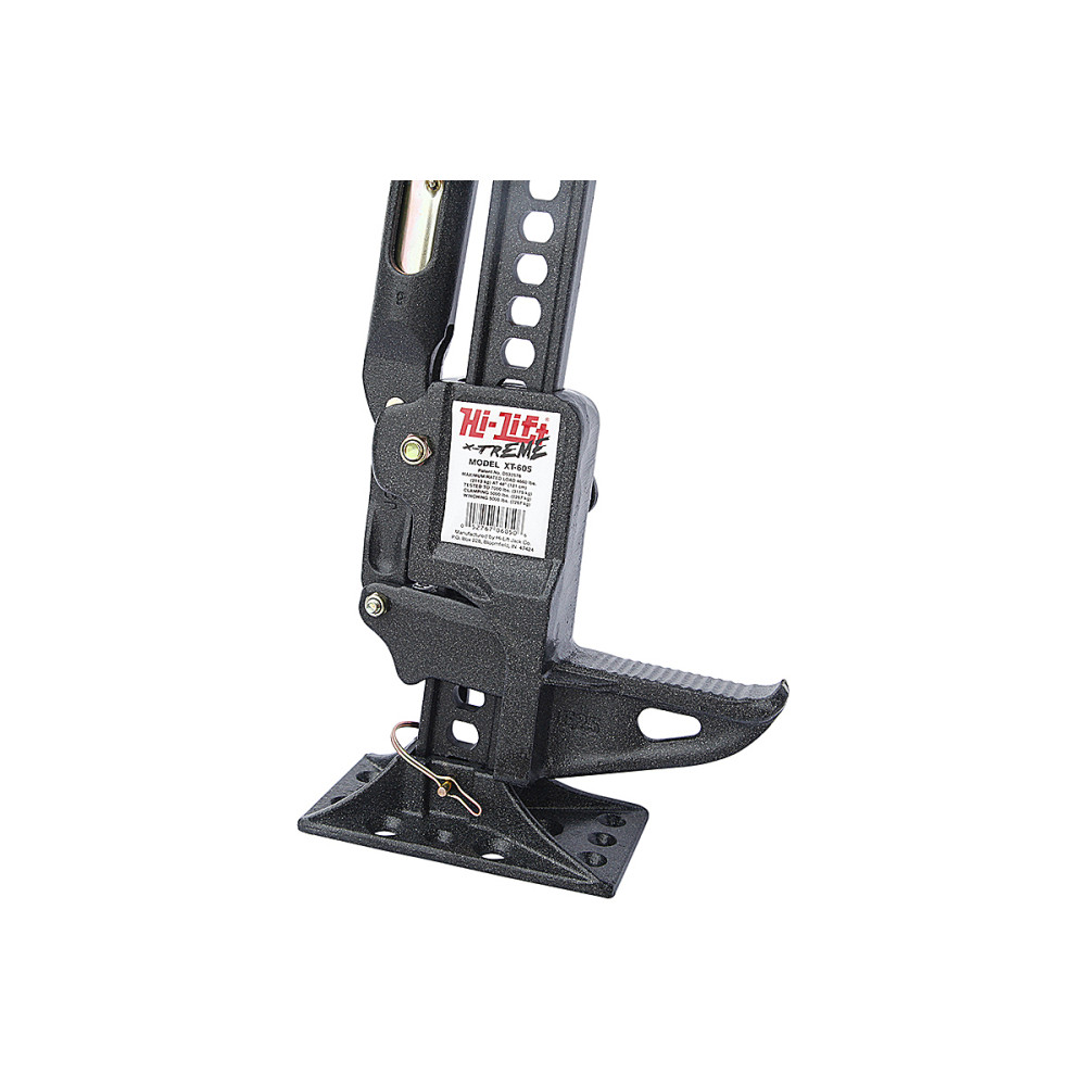 Эта модель принадлежит топовой Extreme серии Hi-Lift и отличается повышенными эксплуатационными характеристиками и надежностью. Также, в отличии от красной серии, крюк у неё выполнен в форме струбцины и имеет более удачную форму, он удобно переставляется с помощью гайки-барашка, и на нем есть специальное отверстие-уловитель под цепь при использовании домкрата в качестве ручной лебедки. Также есть отличие в пятке домкрата - у XT серии она закреплена с помощью быстросъемного крепления шплинта. То есть можно хранить её отдельно и оперативно устанавливать непосредственно перед использованием хайджека.