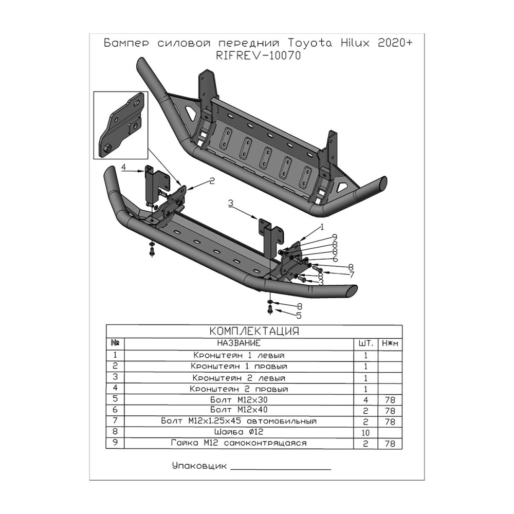 Весь силовой обвес РИФ сертифицирован для установки и эксплуатации в Российской Федерации. Внимание! Бампер устанавливается только с площадкой арт. RIFREV-30000.