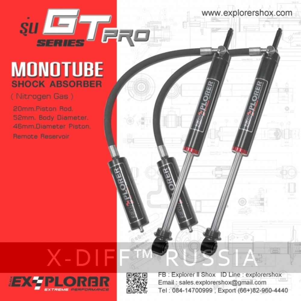 Амортизатор EXLORER серии GT-PRO, однотрубный  с разделенной камерой и с выносным бачком