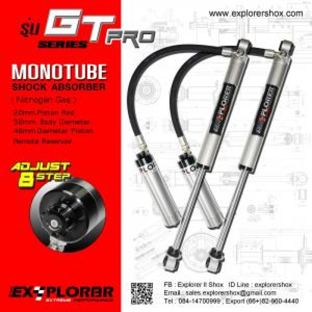 Амортизатор однотрубный  с разделенной камерой и с выносным бачком и 8-ми уровневой регулировкой, регулировка быстрого/медленного сжатия (высокоскоростное и низкоскоростное сжатие)