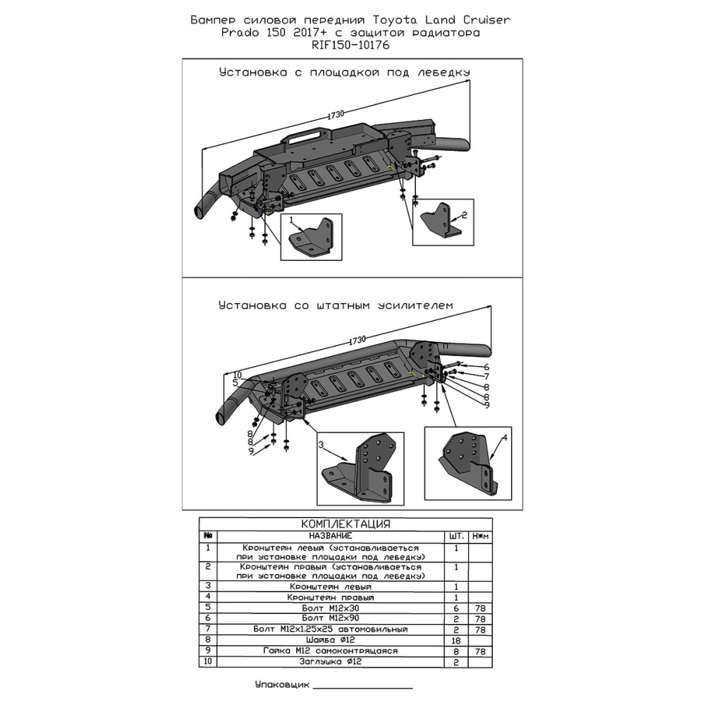 Новая защита совместима с площадкой РИФ под лебедку в штатный бампер RIF150-30001.