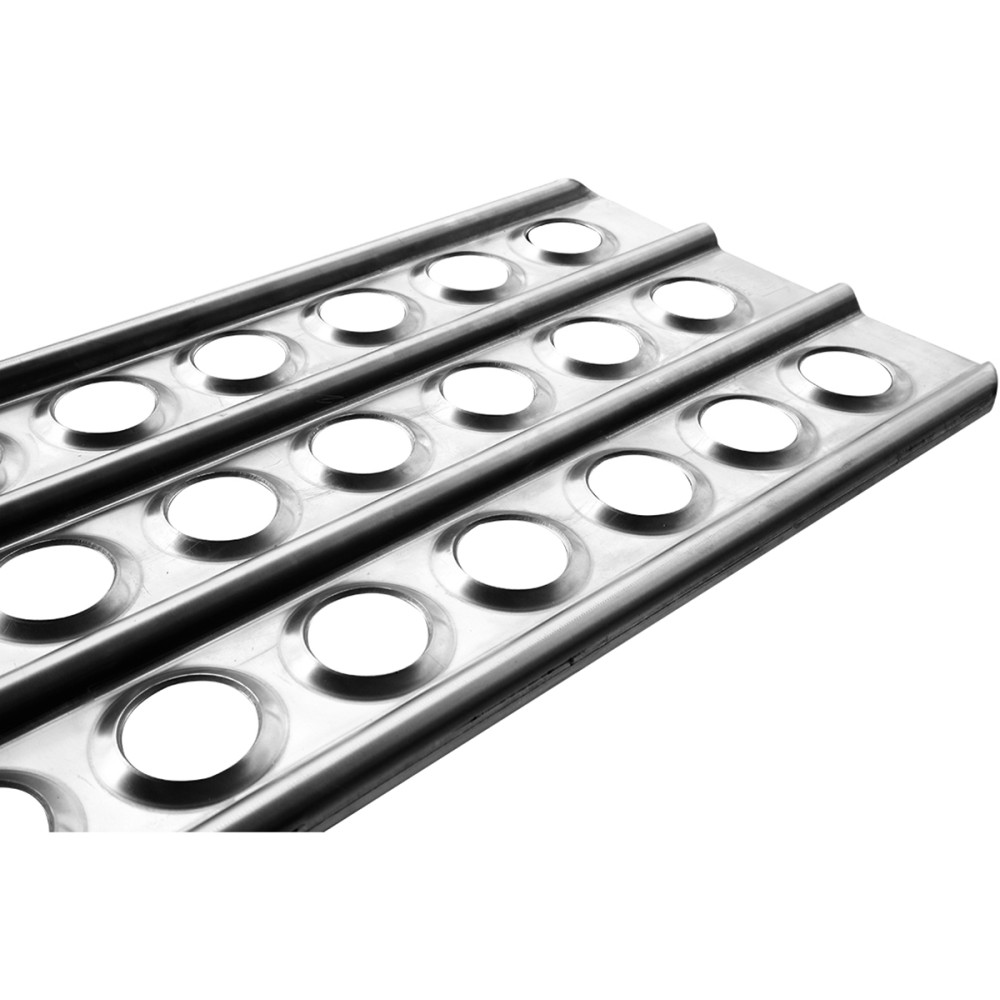 Большие отверстия с отштамповкой обеспечивают хорошее сцепление с шинами и минимизируют пробуксовку колёс по поверхности трака.
