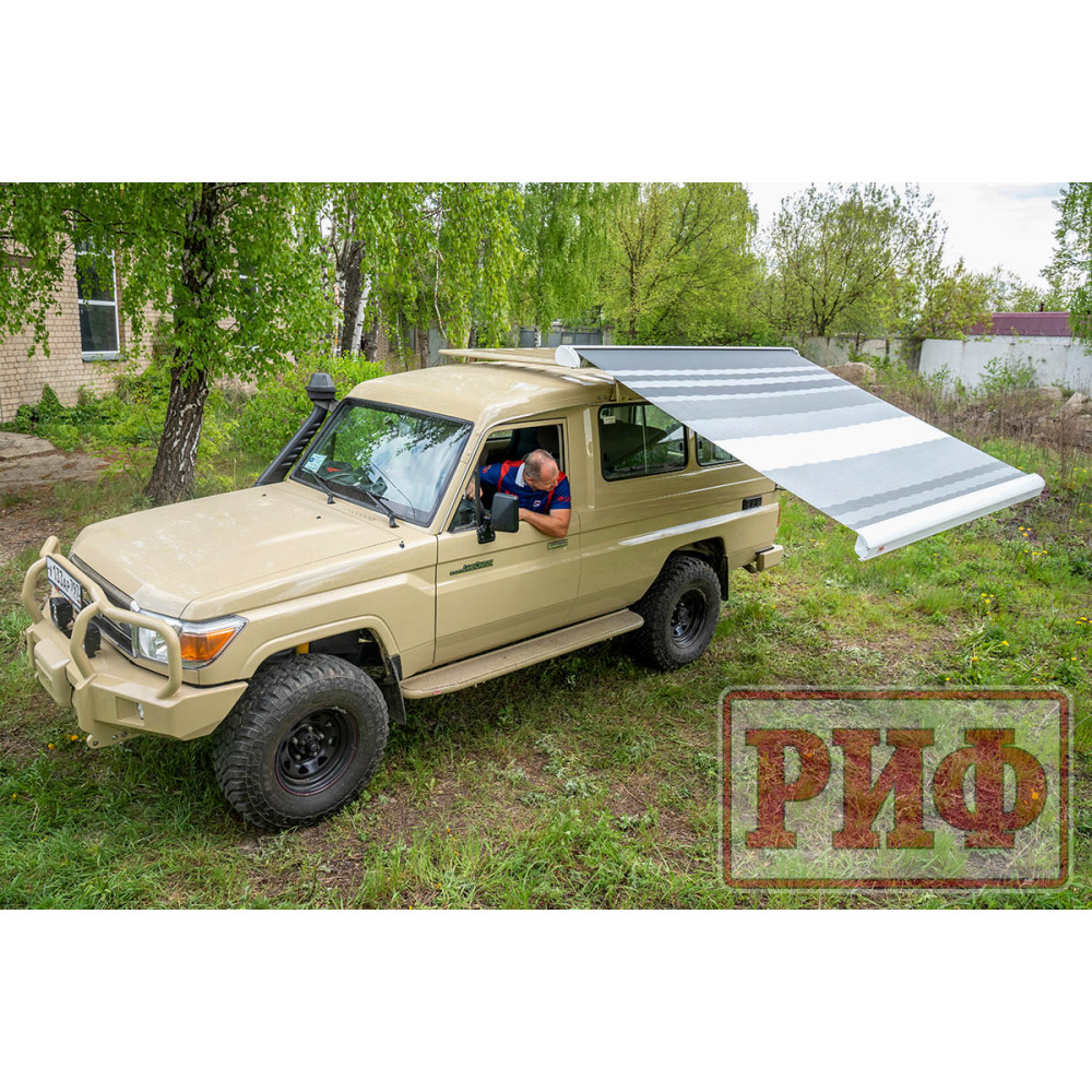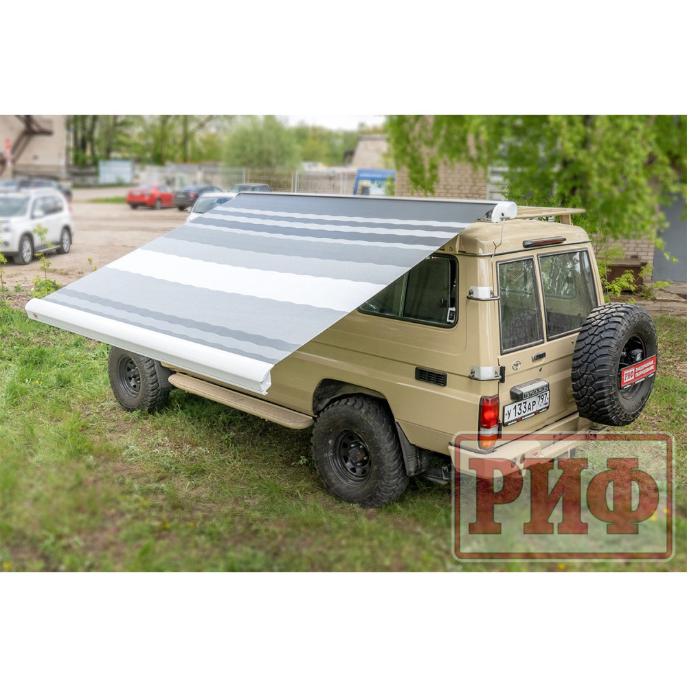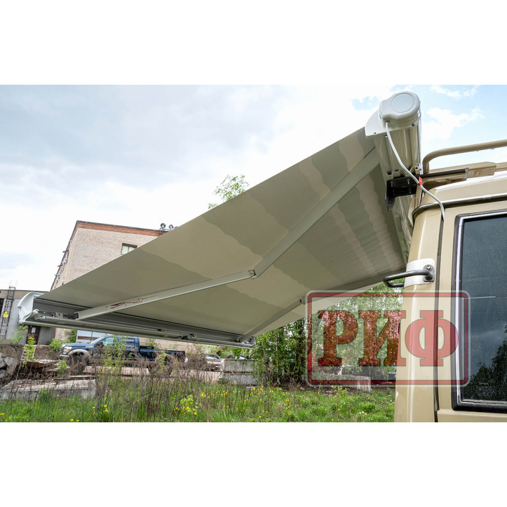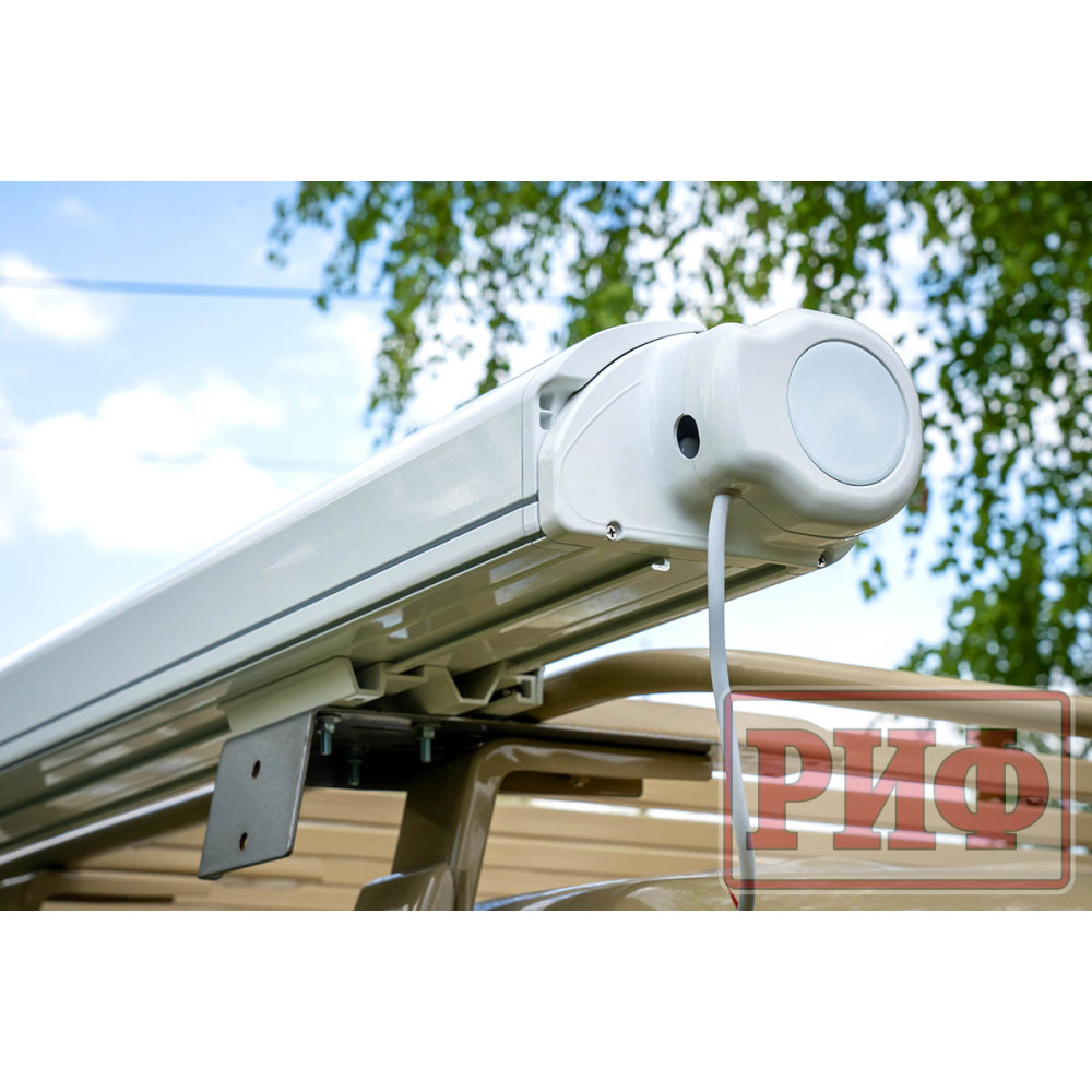 Электрическая выдвижная автомобильная маркиза РИФ - это современный и практичный аксессуар, который создает защиту от солнца и дождя рядом с автомобилем ,прицепом или кемпером.