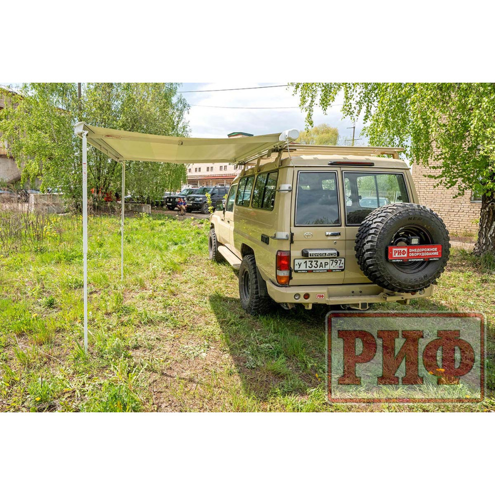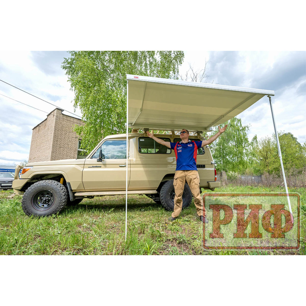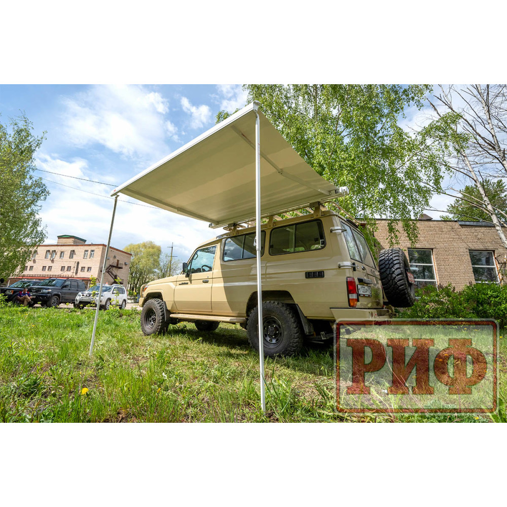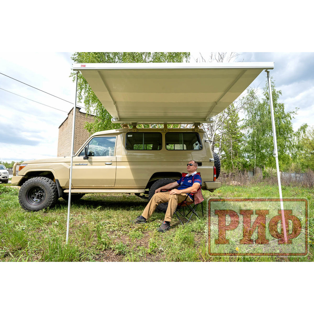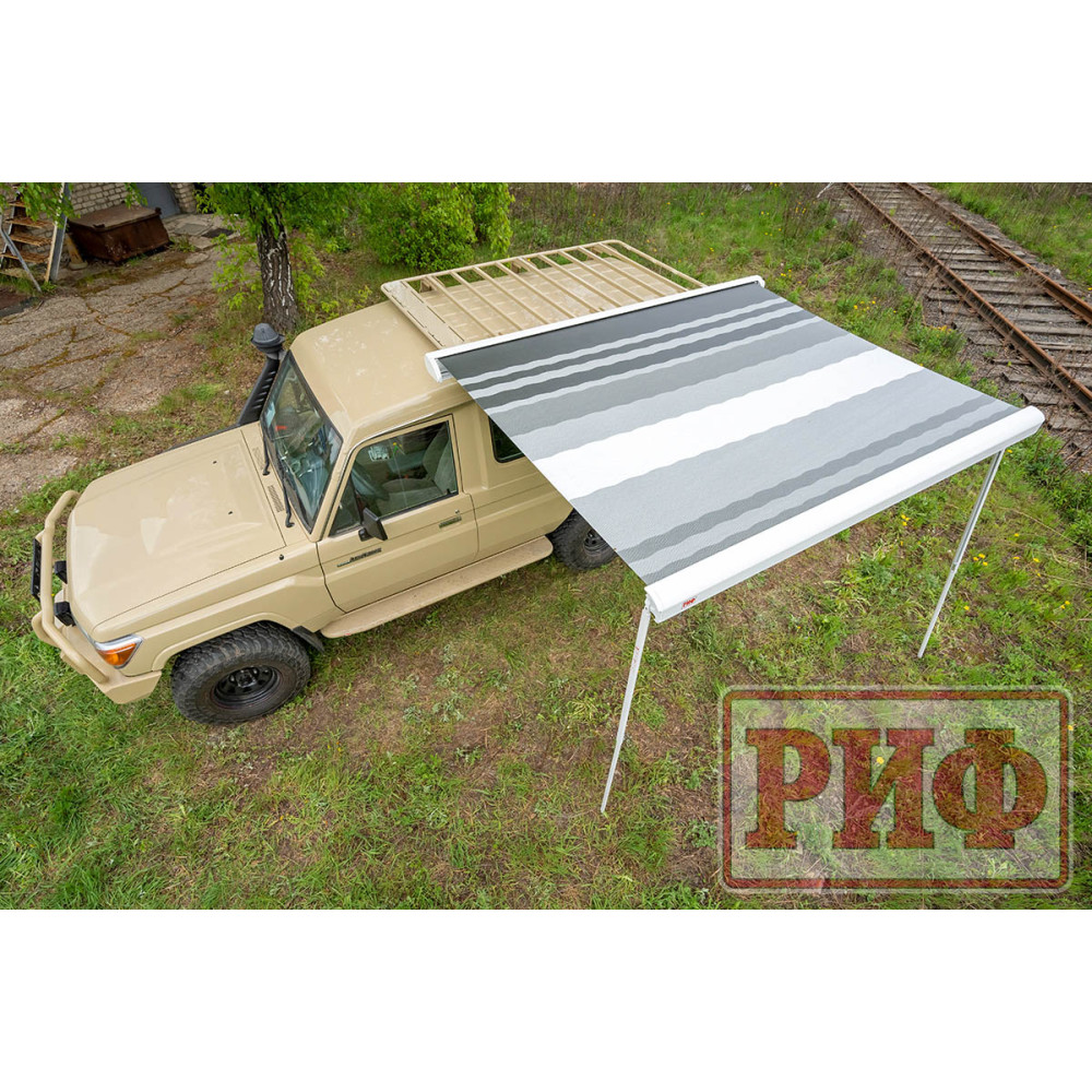 Электрическая выдвижная автомобильная маркиза РИФ - это современный и практичный аксессуар, который создает защиту от солнца и дождя рядом с автомобилем ,прицепом или кемпером.