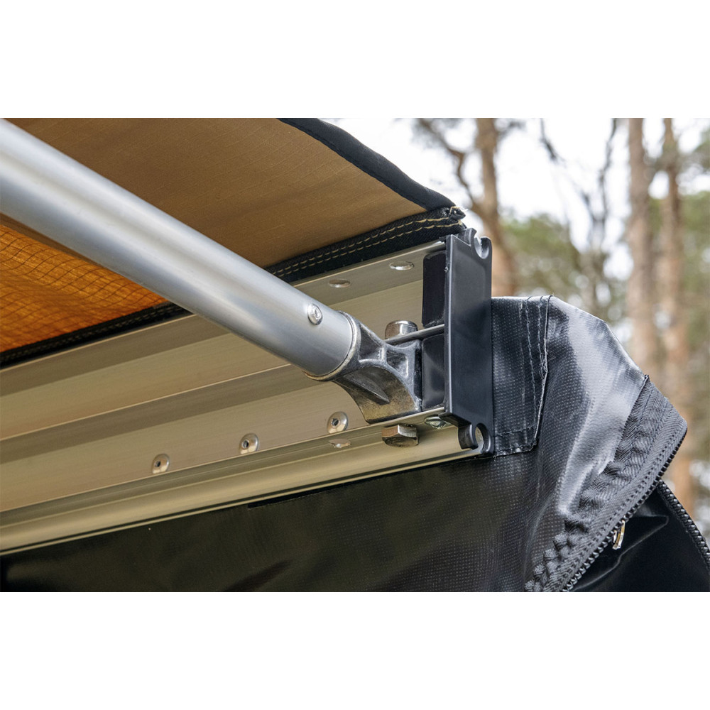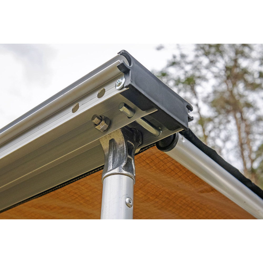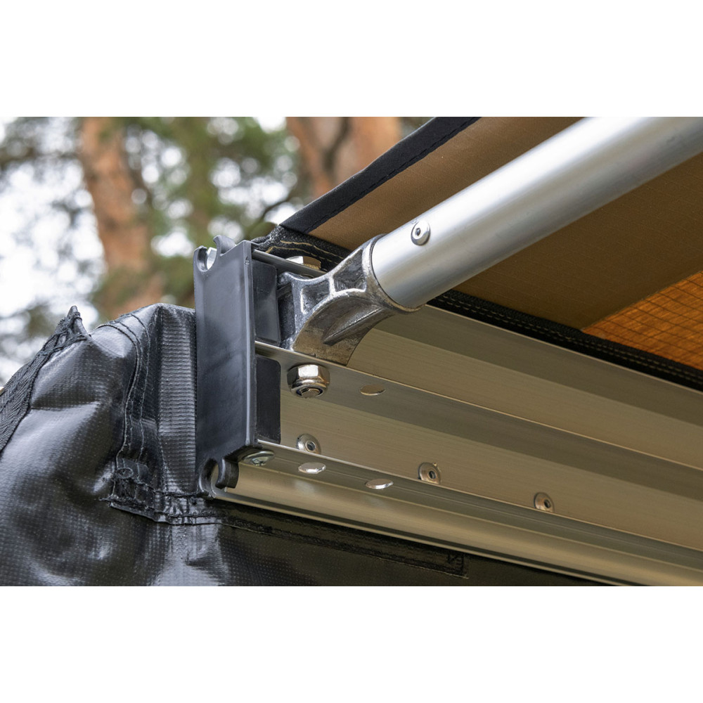 Жестко крепится к кузову автомобиля или автомобильному багажнику, удобно и быстро разворачивается в походное положение. Отлично защищает от прямых солнечных лучей или атмосферных осадков. В транспортном положении тент-маркиза упакован в прочный чехол из ПВХ материала, надежно защищающий его от повреждений или загрязнений.