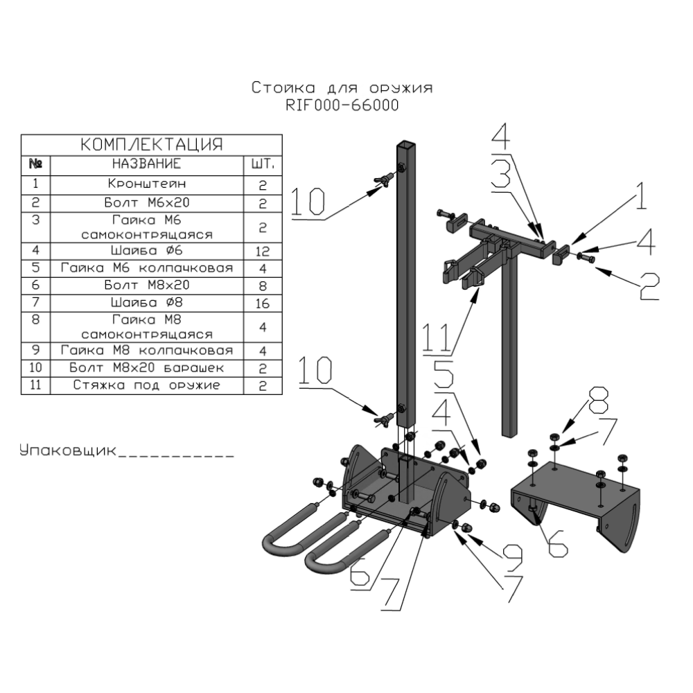 Стойка для крепления ружья в автомобиле. Предназначена для крепления двух единиц оружия. Обычно устанавливается в багажном отсеке автомобиля и позволяет безопасно перевозить оружие в собранном виде.