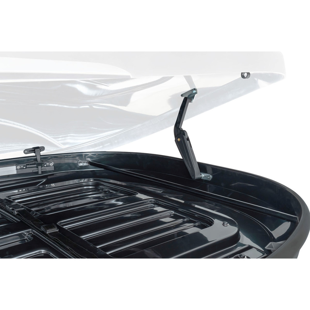 Простая и надёжная система фиксации обеспечивает крепление бокса к поперечинам автомобиля. Просцесс снятия и установки быстр и удобен, и не требует специальных навыков или инструментов. Для обеспечения сохранности багажа во время парковки или ночной стоянки бокс снабжен запираемыми замками.