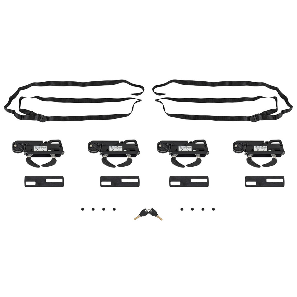 • Крепление на багажные поперечины в комплекте