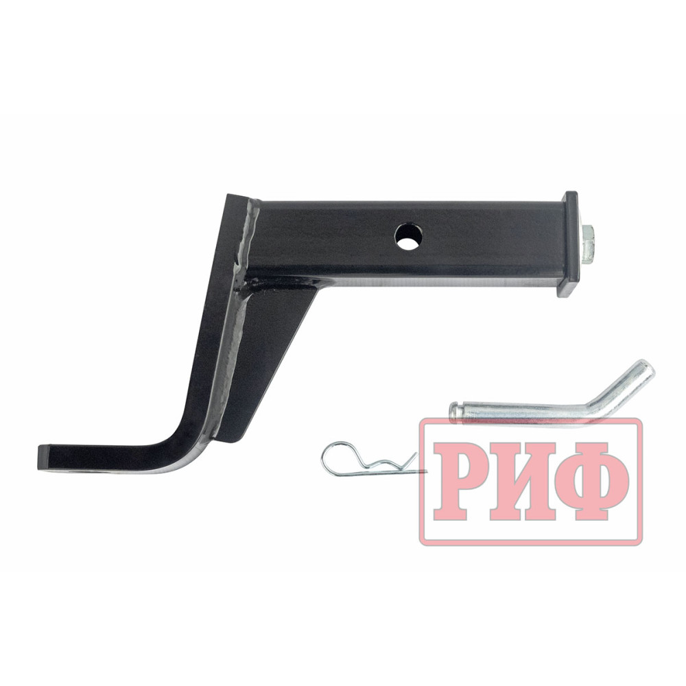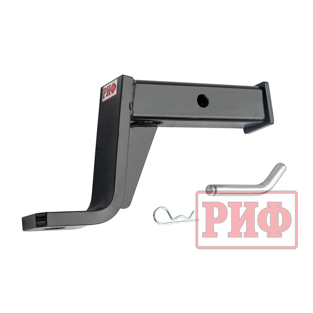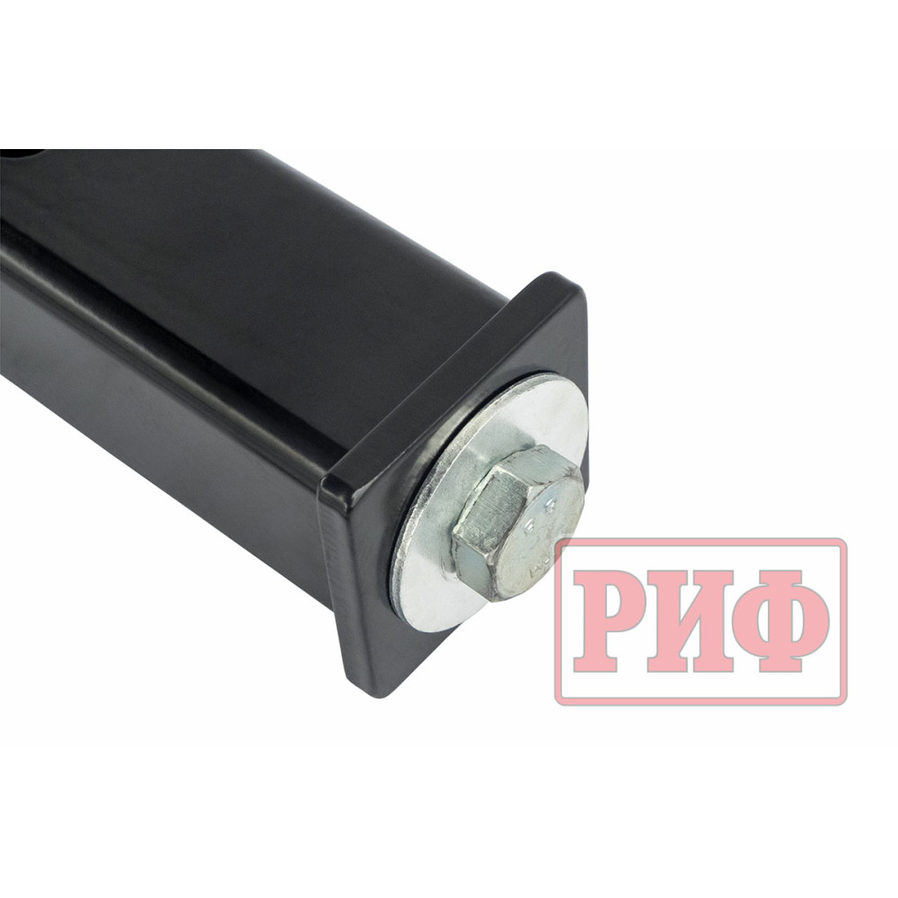 Съемный фаркоп (или переходник фаркопа) необходим при использовании более низкого прицепа с лифтованным внедорожником, поскольку позволяет добиться горизонтального расположения дышла прицепа. Фаркоп РИФ сделан из квадратной стальной трубы с толщиной стенок 5 мм под стандартное двухдюймовое (5 см) крепление типа «американский квадрат» и имеет отверстие под крепежный «палец».