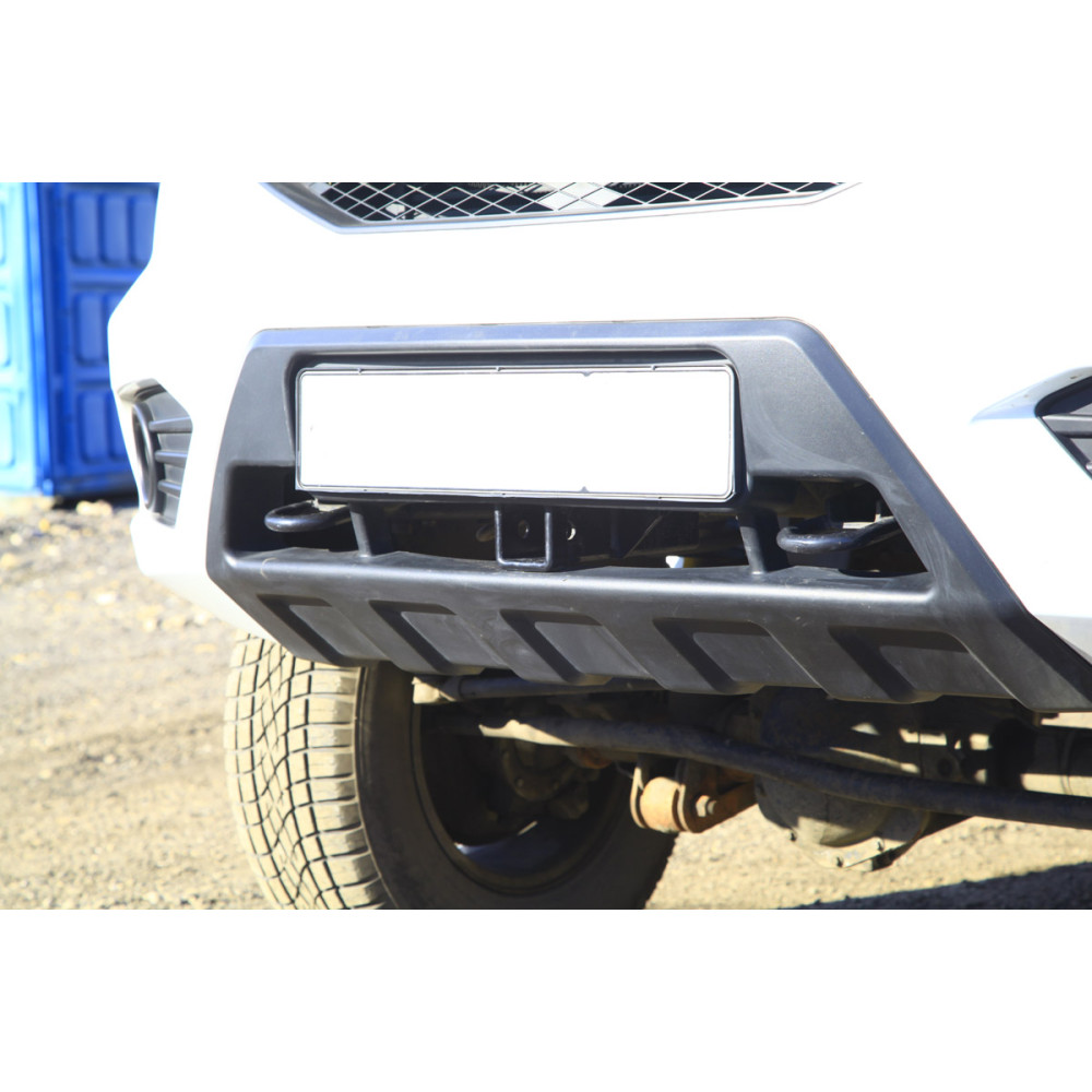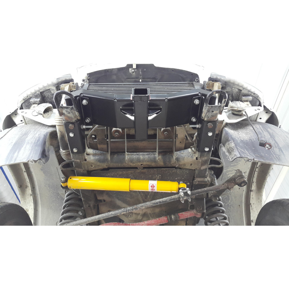 Передний фаркоп - это универсальное устройство предназначенное для использования с самым различным дополнительным оборудованием. В него может быть установлена площадка для переносной лебедки, подножка для обслуживания двигателя или вставка в фаркоп для подъема автомобиля домкратом Hi-Lift. В случае установки в передний фаркоп прицепного крюка появляется возможность парковки прицепа передним ходом, что может быть удобно в ряде случаев.