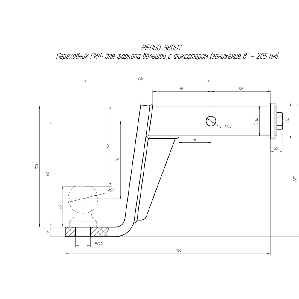 Переходник РИФ для фаркопа большой с фиксатором (занижение 8" - 205 мм) 0 5450р.