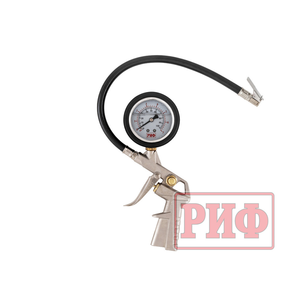 • Пистолет РИФ для подкачки колес виброустойчивый (серебро) с манометром РИФ от 0 до 7 атм.