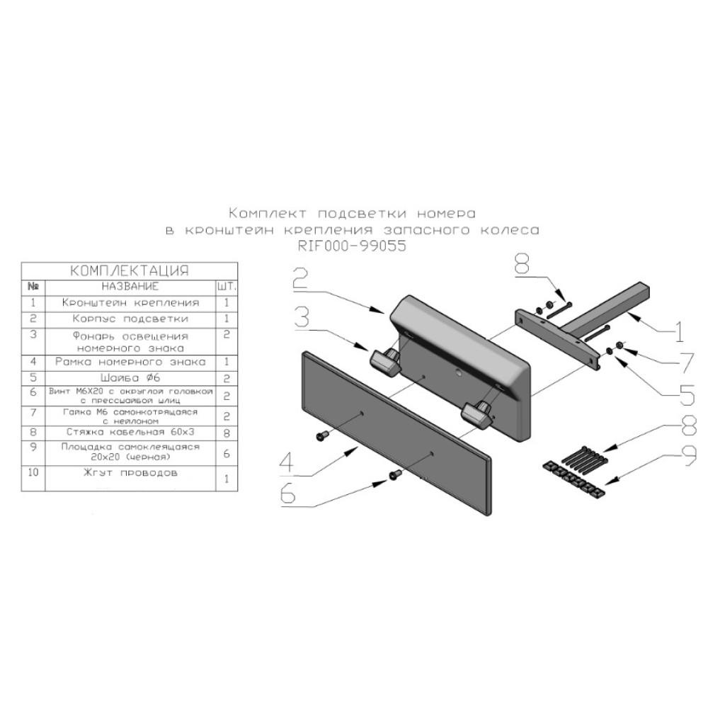 Комплект подсветки номера в кронштейн крепления запасного колеса