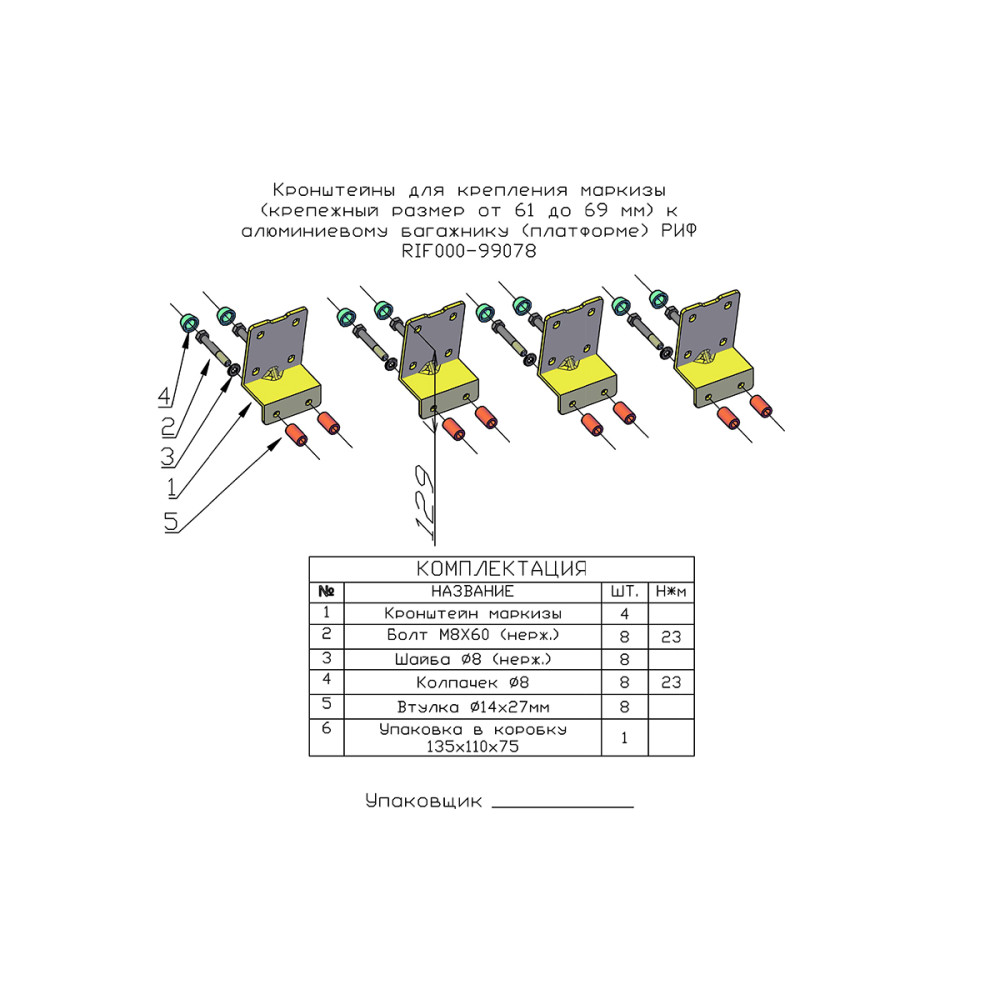 Кронштейны для крепления маркизы (крепежный размер от 61 до 69 мм) к алюминиевому багажнику (платформе) РИФ