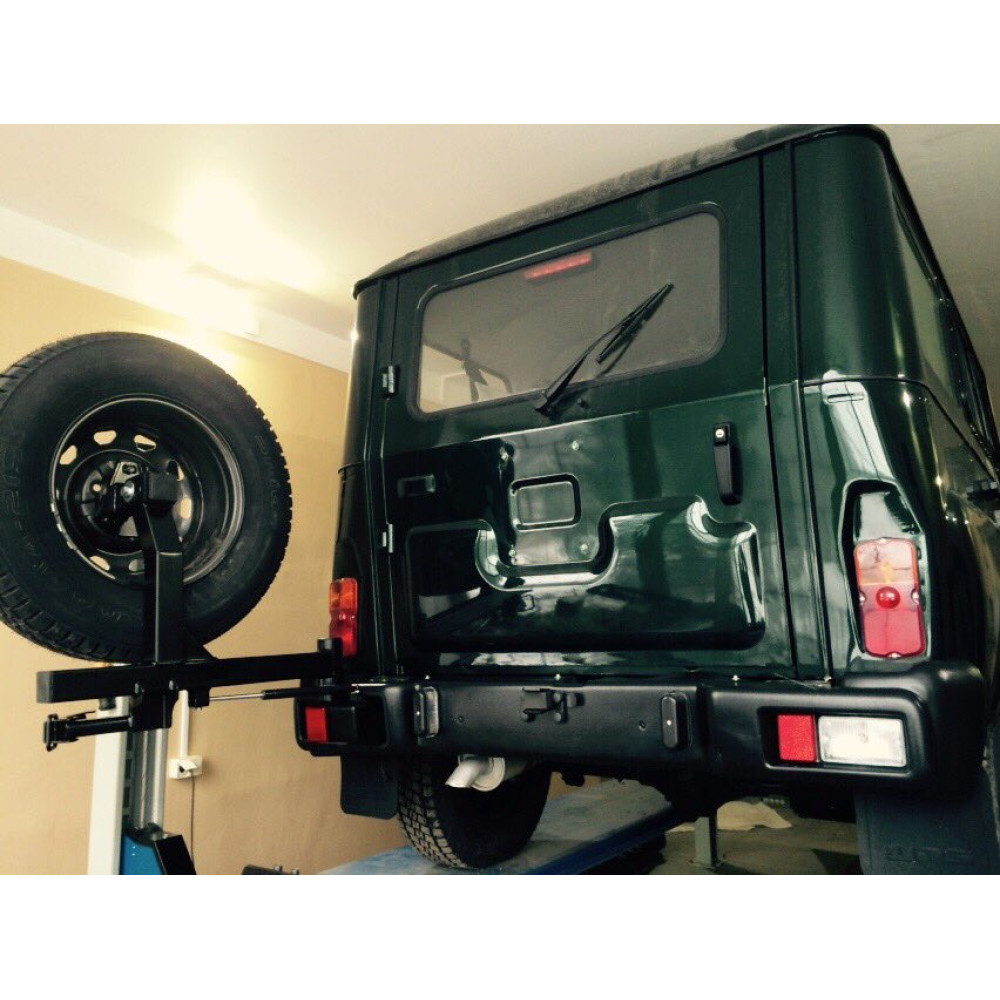 Штатное расположение запасного колеса на двери багажника доставляет владельцам УАЗ Хантер немало хлопот. Даже от веса штатного колеса, спустя какое-то время, начинает провисать «пятая» дверь и перекашиваться при захлопывании. В случае если запасное колесо увеличенного размера, соответствующее основному комплекту колес внедорожника, то процесс этот происходит еще быстрее. Усиливать родные петли практически бесполезно, поэтому единственным вариантом решения данной проблемы является установка калитки и перенос на неё запасного колеса со штатного места.