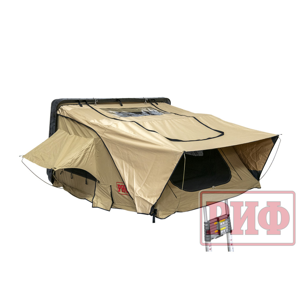 Палатка на крышу автомобиля РИФ Hard RT03-140, корпус черный, тент песочный